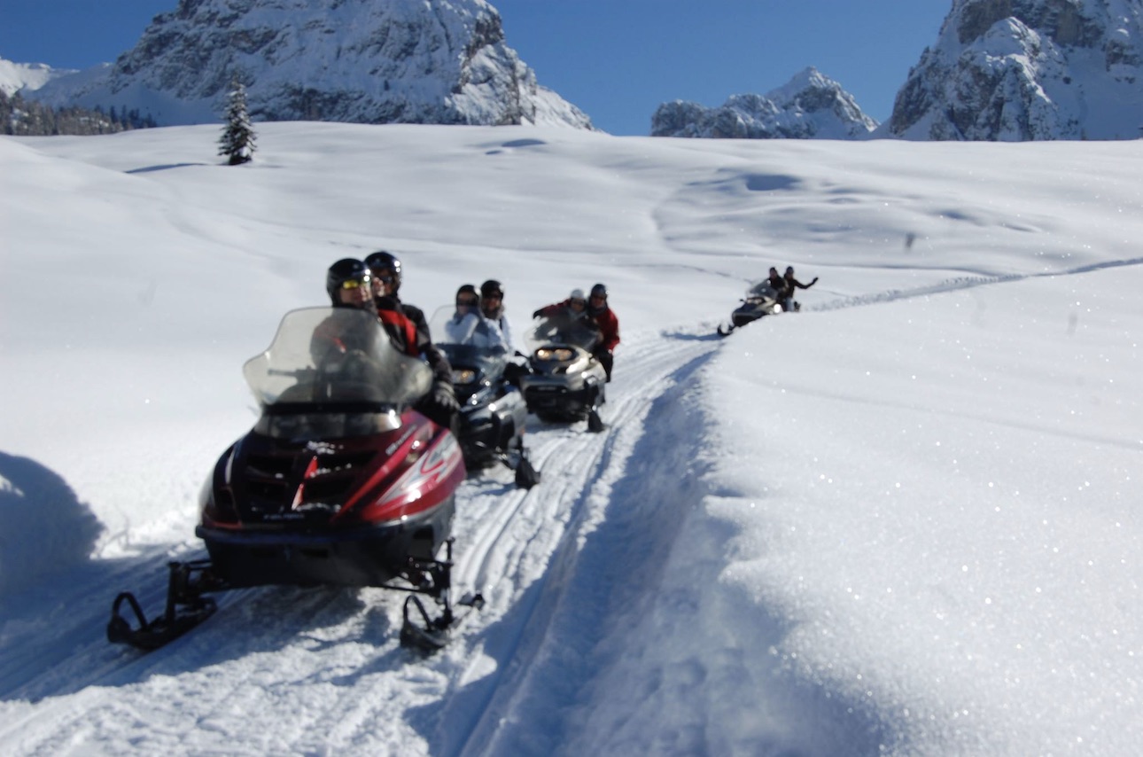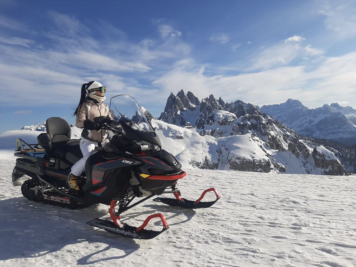 Durante le vacanze invernali potete provare un giro in motoslitta a pochi chilometri da Cortina, sotto le Tre Cime di Lavaredo.
