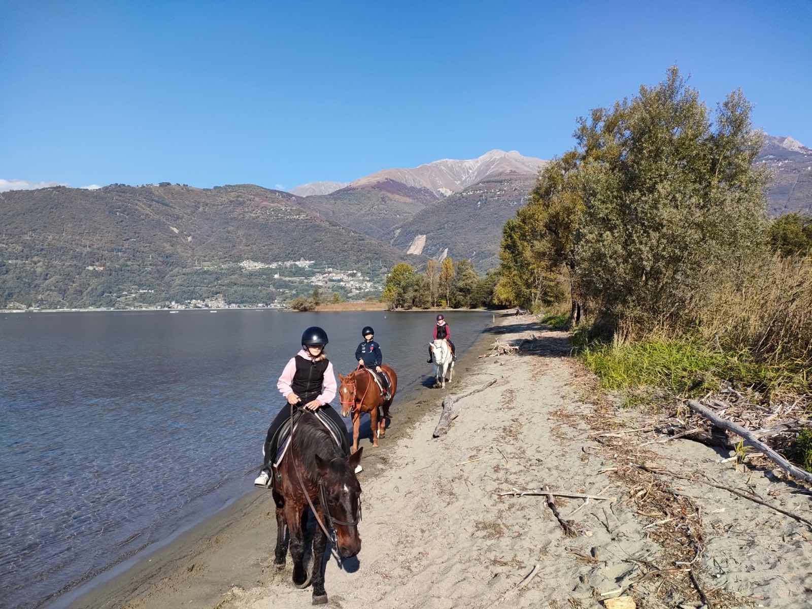Passeggia a cavallo al Lago di Como con partenze da Colico, Como o vicino a Lecco. Passeggiate in riva al lago....