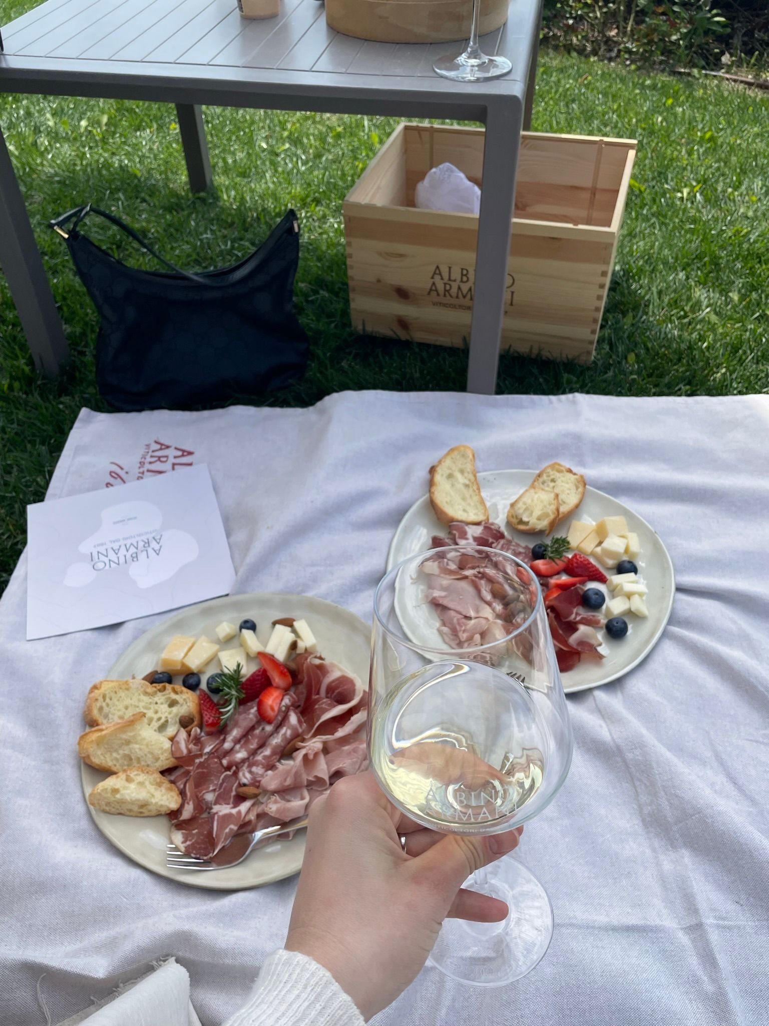 Il picnic ha un prezzo di 44€ a persona per gli adulti e 20€ a persona per i bambini e include una box con salumi, formaggi d'eccellenza e vini da degustare.