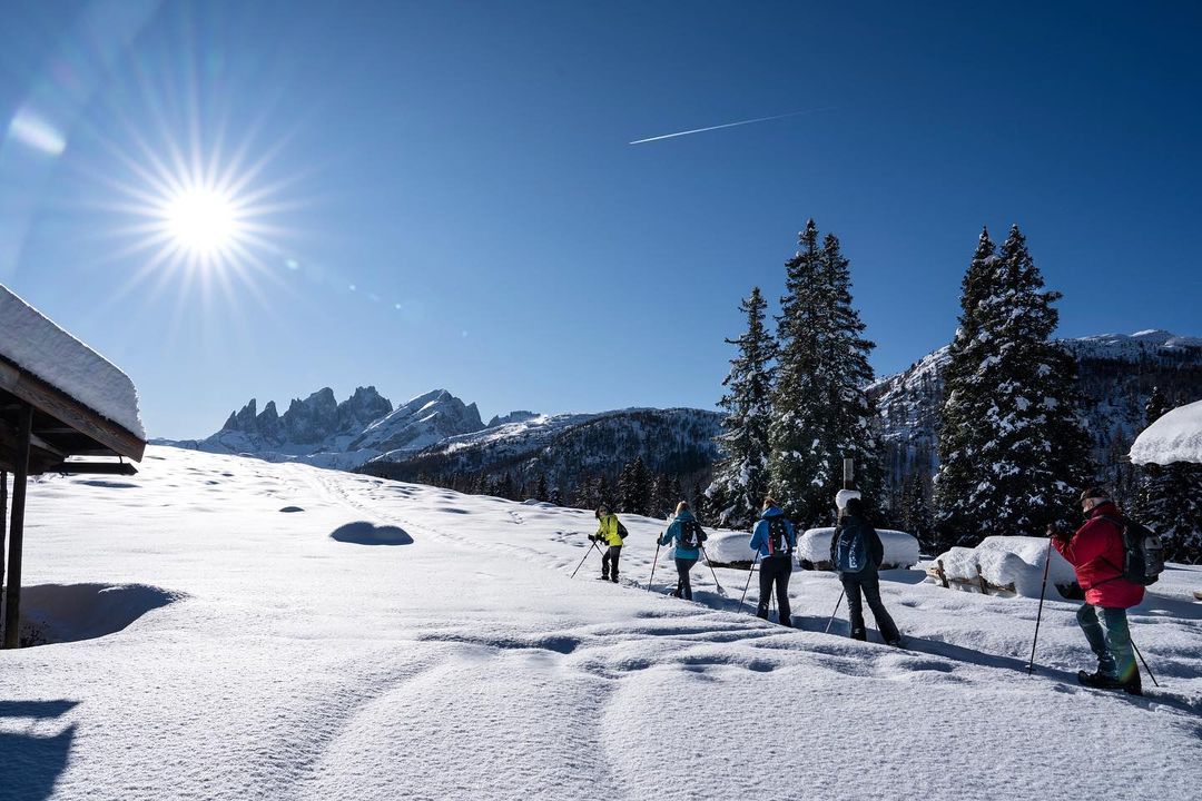 La ciaspolata di gruppo tra Moena e il Passo San Pellegrino offre un’occasione unica per trascorrere una mattina o un pomeriggio immersi nella neve fresca delle Dolomiti.