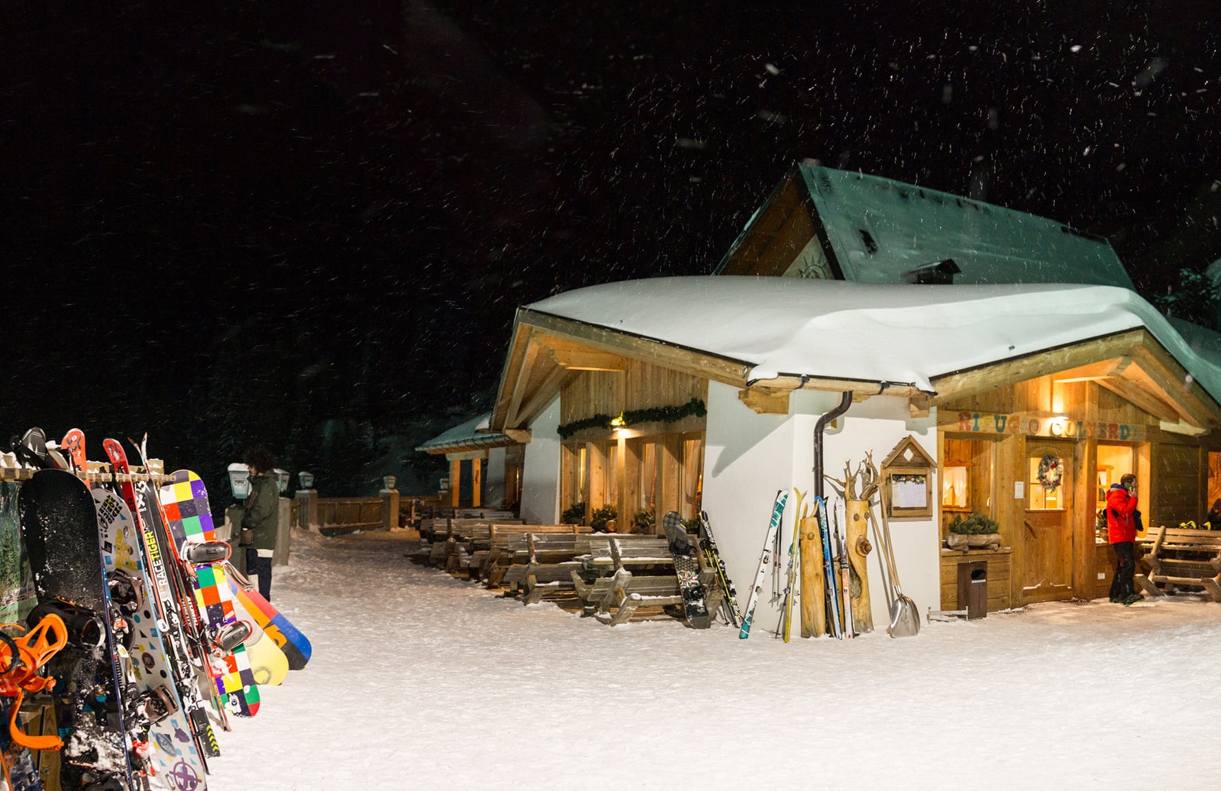 Vi consigliamo una cena in baita ai piedi delle Pale di San Martino, per ammirare il fascino delle Dolomiti.