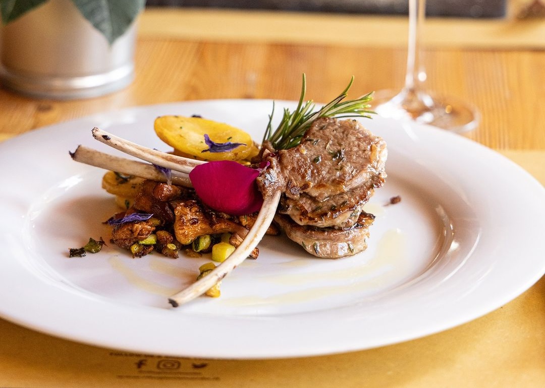 La cucina propone piatti preparati con prodotti locali ed è possibile sia pranzare che cenare. Il menù fisso ha un costo di 55€ a persona e comprende antipasto o primo a scelta, secondo e dolce.