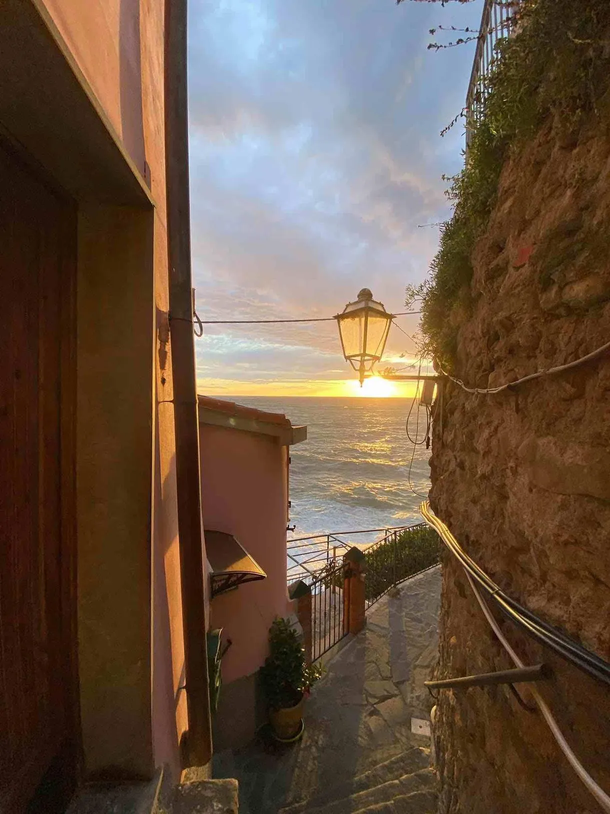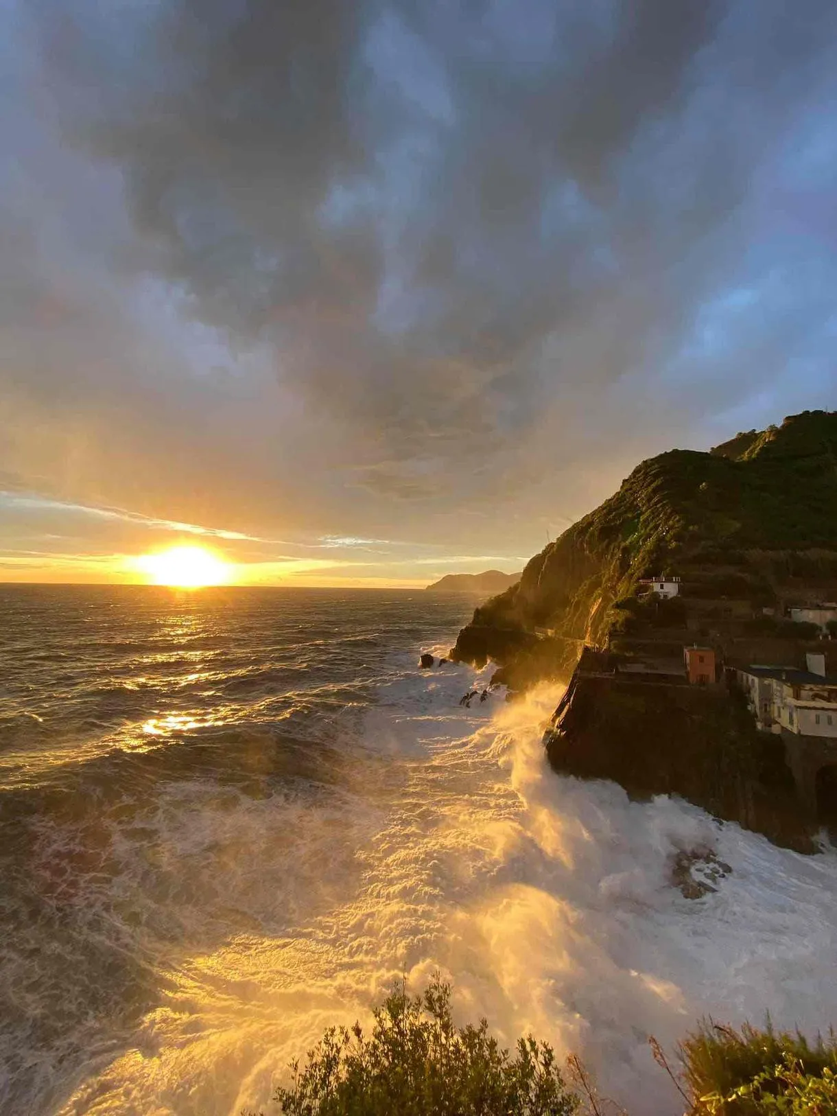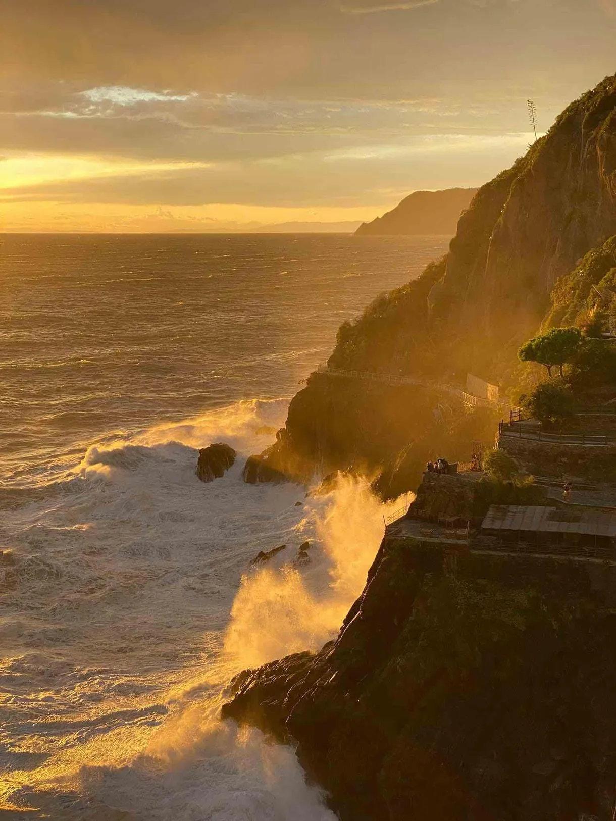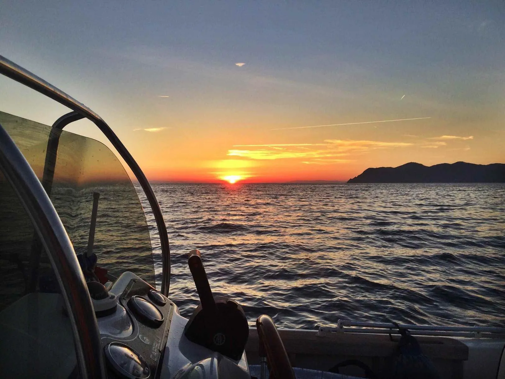 Il tramonto è il momento un po' più romantico per andare a fare un giro in barca alle 5 Terre e per gustare un delizioso aperitivo. Quando il mare è calmo, in questo periodo della giornata si possono vedere e, se fortunati, toccare i delfini che ci sono nella riserva naturale delle Cinque Terre.