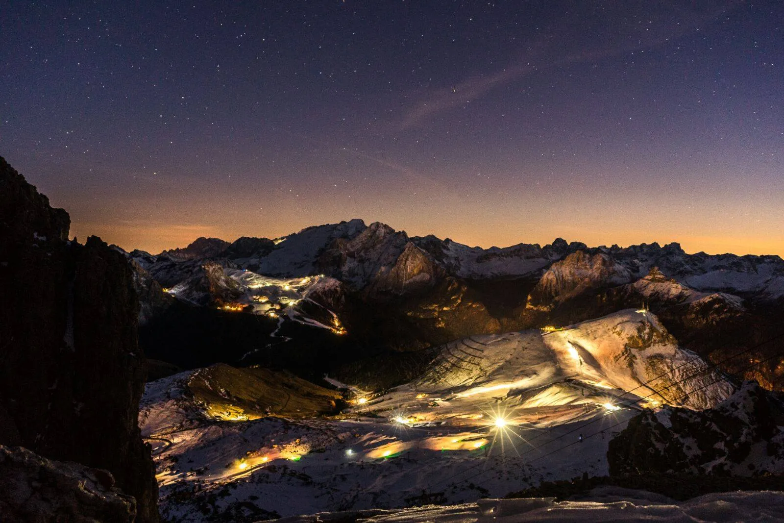 La partenza è pianificata per le 19:00 dal Passo Sella e con un gatto delle nevi o quad cingolato raggiungerete in circa 10 minuti il rifugio da cui potrete ammirare il panorama innevato sulle Dolomiti ad oltre 2000 metri.