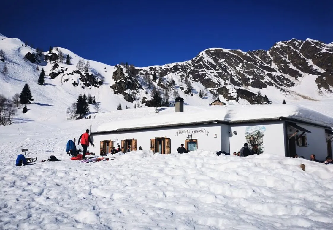 Cena in baita con trasporto in motoslitta in Alta Val Brembana