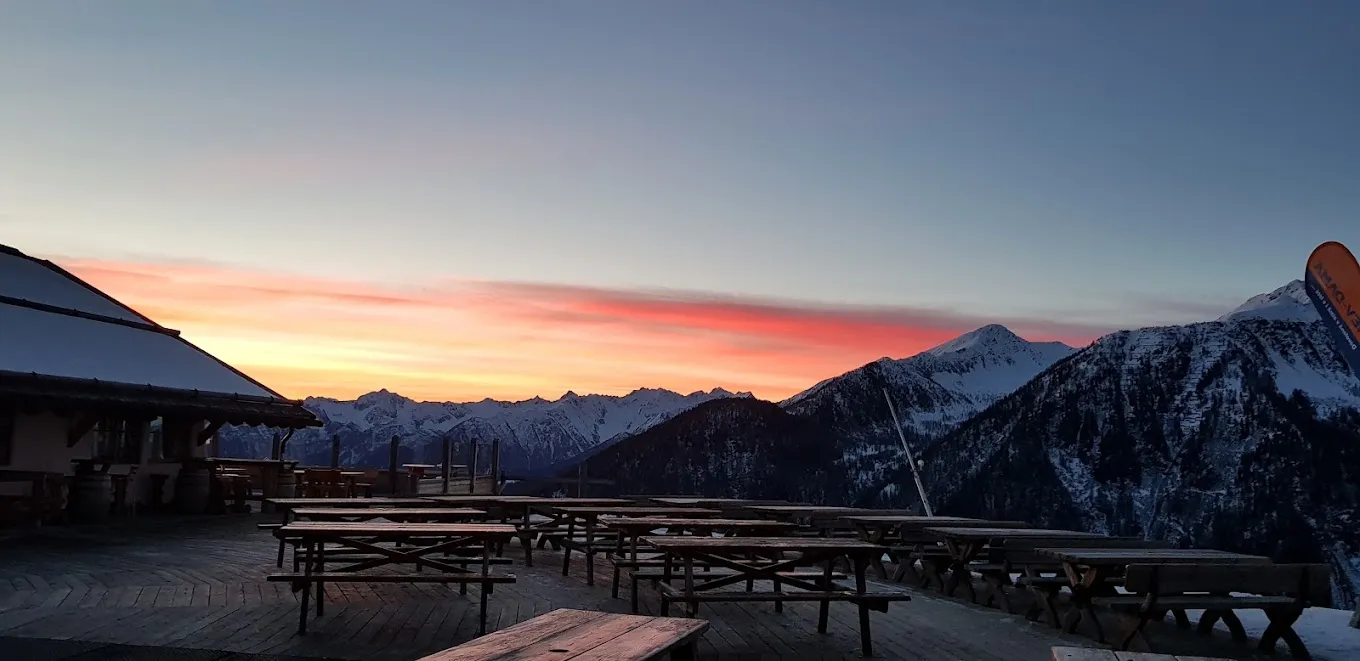 Concedetevi una cena in rifugio con trasporto su gatto delle nevi in Val di Pejo tra le montagne del Trentino.