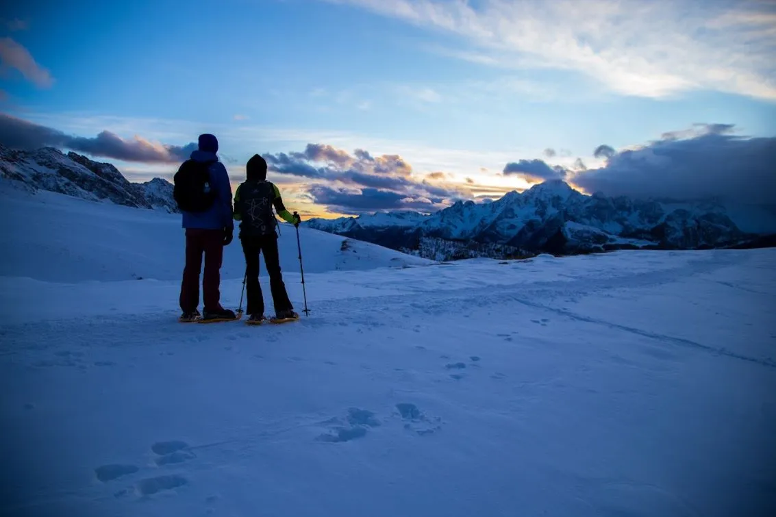 Inizierete l'escursione nel pomeriggio e passando per sentieri innevati al tramonto arriverete alla baita in cui potrete gustare un'ottima cena tipica. Il ritorno sarà anch'esso un'esperienza unica poichè avrete la possibilità di concludere la ciaspolata in notturna e provare un'avventura nuova. (Ricordatevi le torce frontali!)