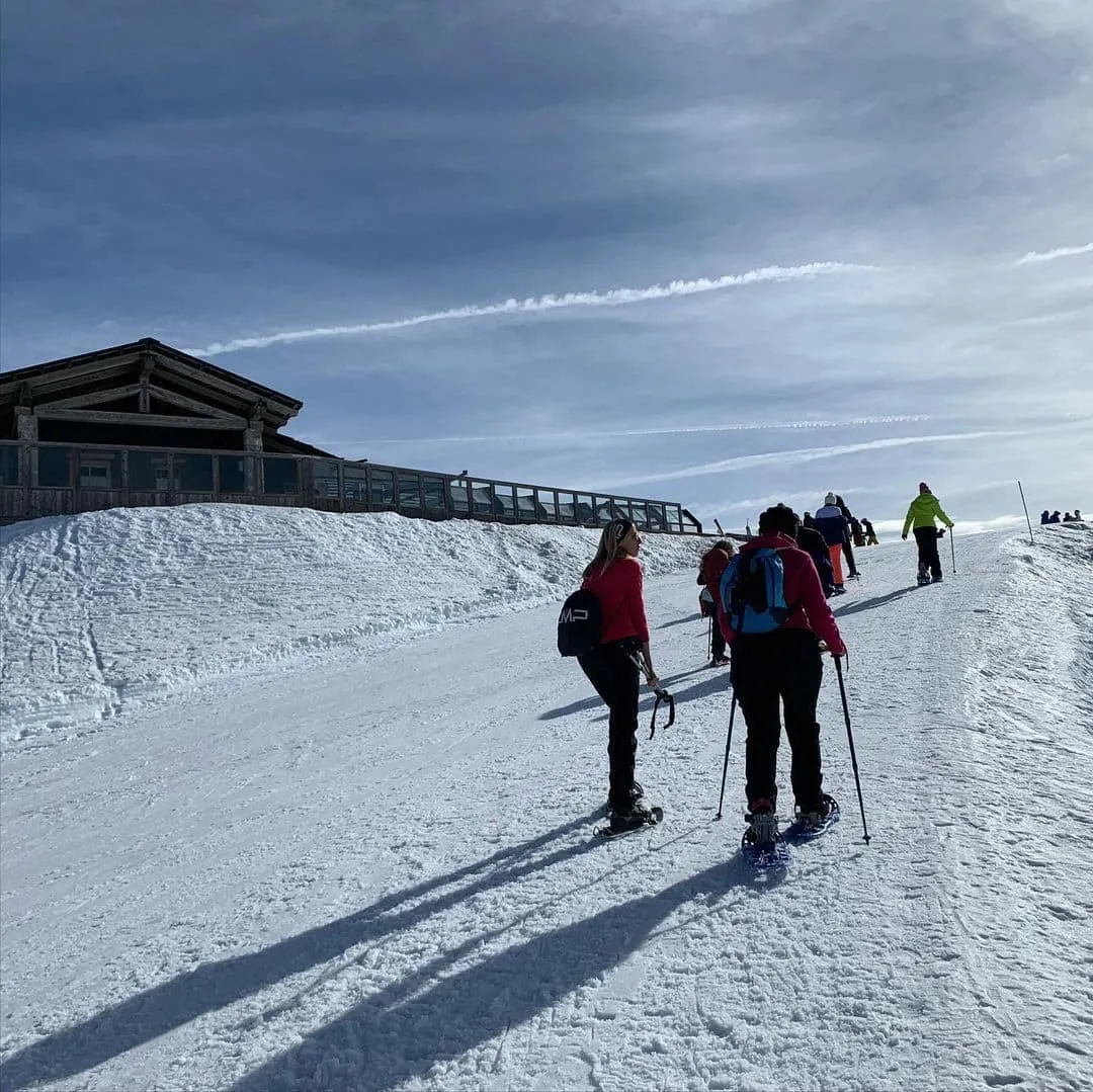 Se preferite invece una camminata più breve e terminare con un aperitivo all’aria fresca tra la neve, potrete scegliere l’uscita preserale “apericiaspola” con inizio alle ore 17:00 e durata di 1 ora e 30 min (ciaspolata di circa 1 ora).