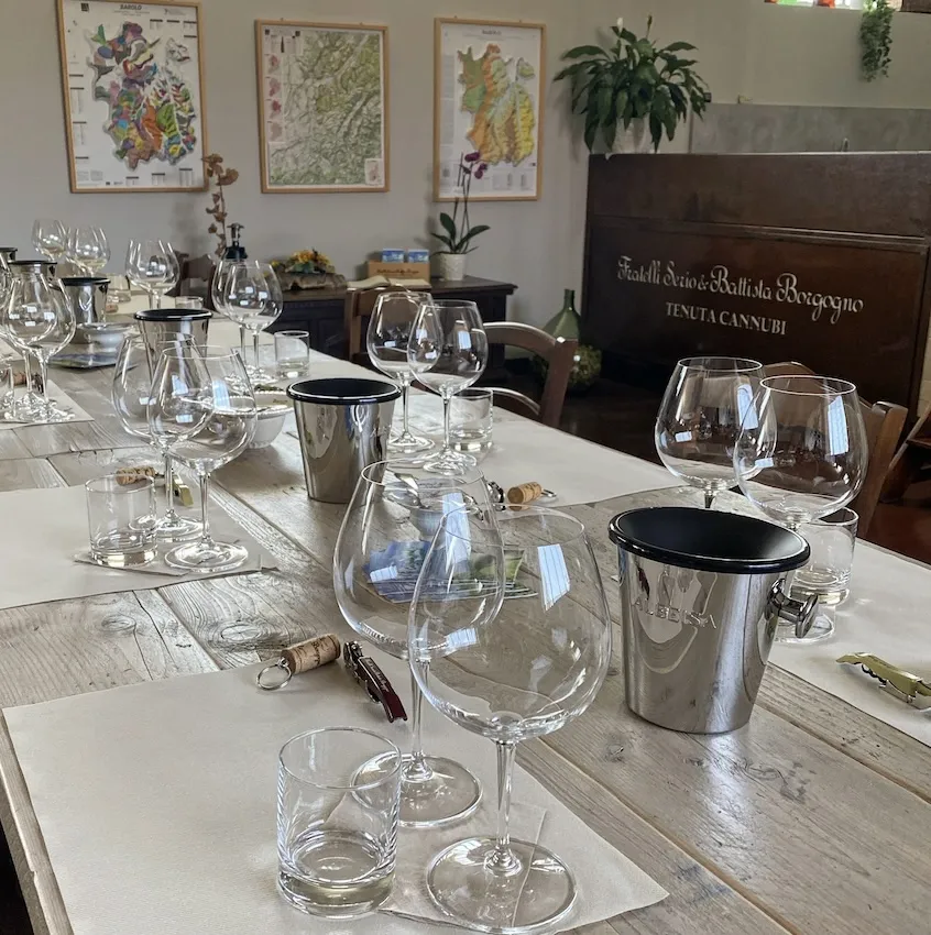 Comprende la degustazione di 6 vini di produzione locale tra cui 2 calici di Barolo DOCG. La degustazione è accompagnata da grissini artigianali.
