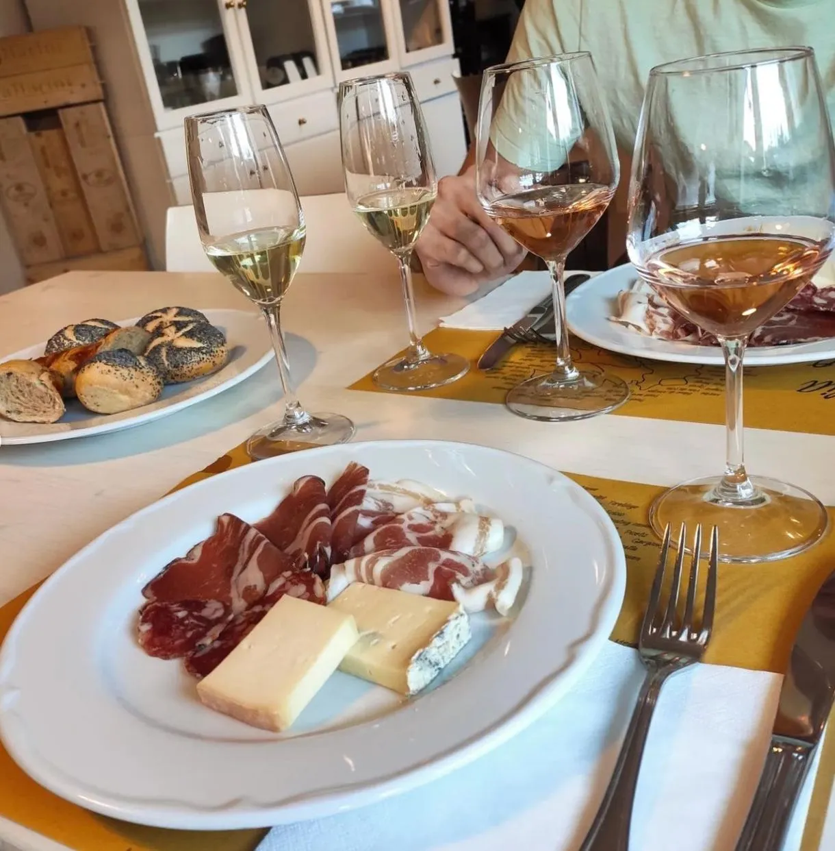 - Calice di “Arlecchino” 2023 Varietale Chardonnay abbinato a Culatello di Zibello