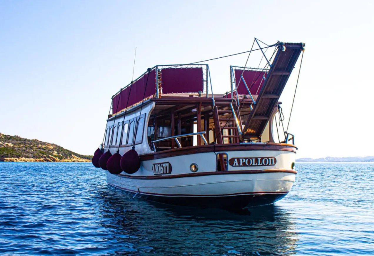 Salirete a bordo della barca d'epoca M/N Apollo II e la prima sosta sarà a Caprera, a Cala Garibaldi. Quindi, la navigazione prosegue e la tappa successiva sarà l'Isola di Budelli, dove, durante la seconda sosta, potrete scendere in spiaggia o praticare lo snorkeling attorno alla barca e nuotare fino alla Spiaggia del Cavaliere. L'ultima sosta prevista sarà a Spargi, prima di fare ritorno a Palau.