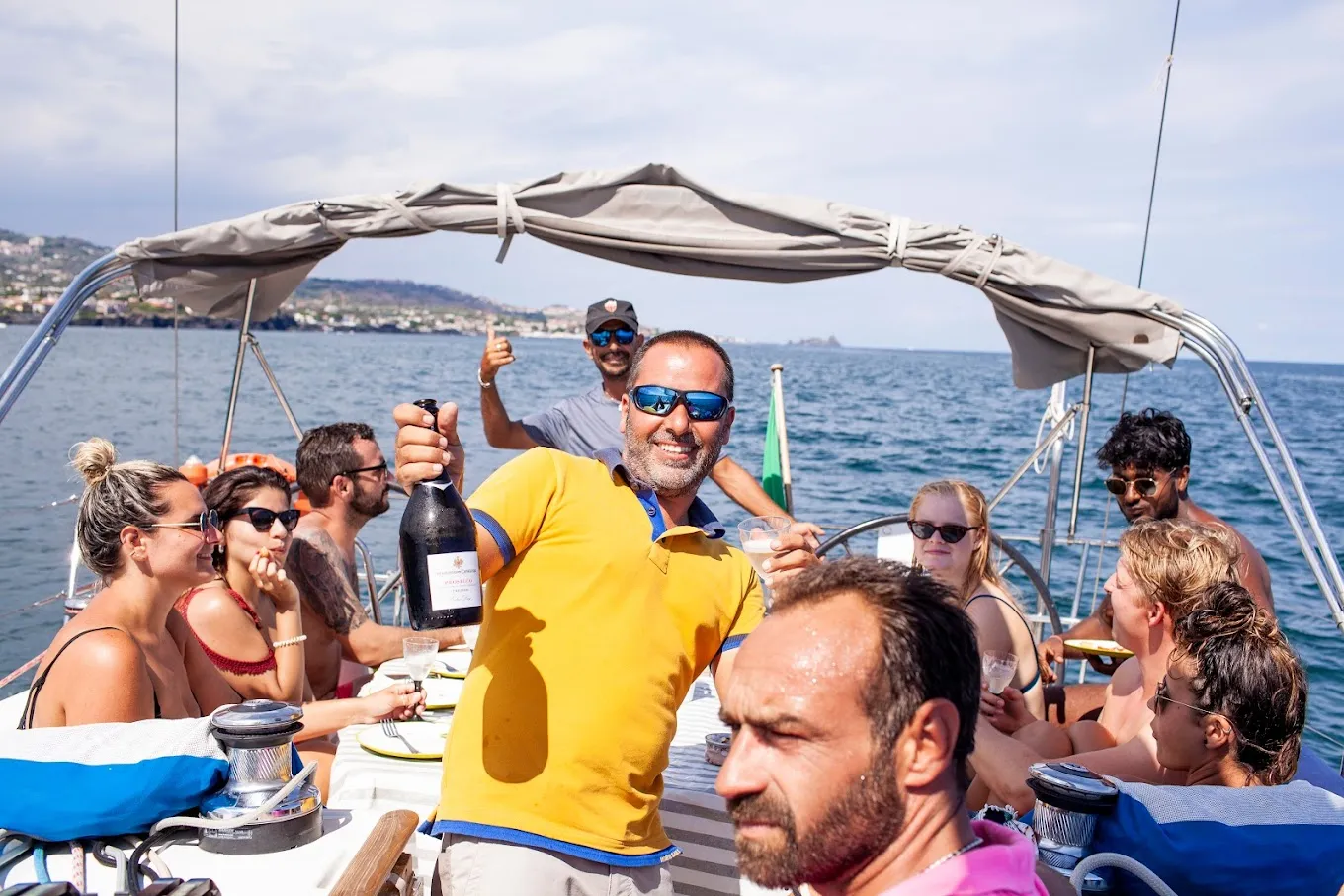 Si inizia con un breve incontro presso il Caffè del Porto, poi salpiamo dal Club Nautico di Catania e apriamo le vele lungo la costa vulcanica, ammirando l'Isola dei Ciclopi, legata all'Etna.