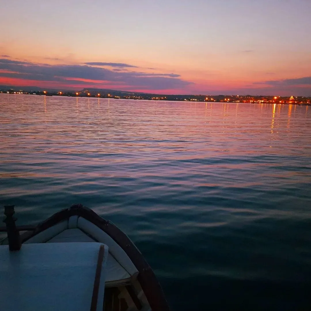 Trascorri una serata in barca, ammirando il tramonto che cala sull'Isola di Ortigia.