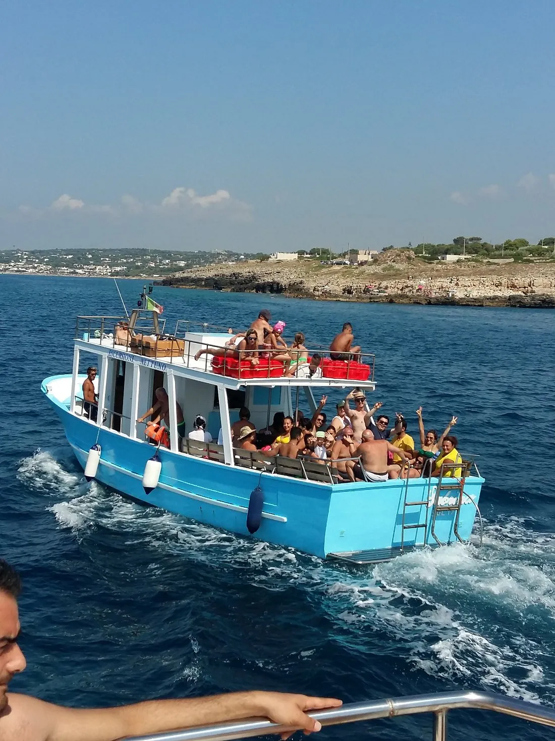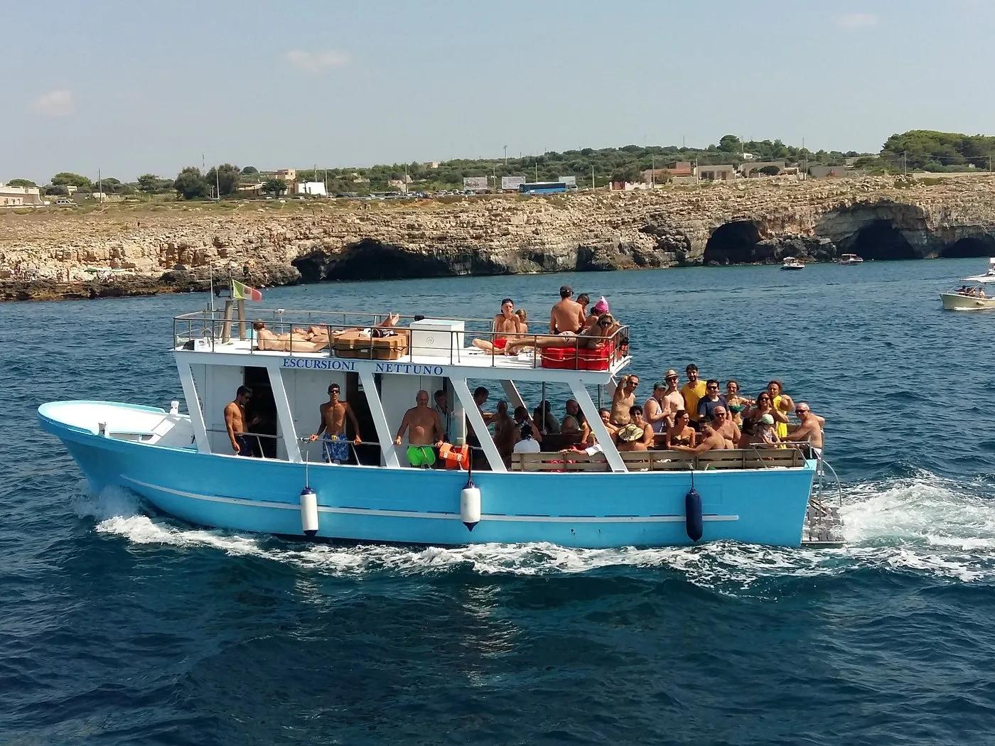 Dopo la partenza dal porto di Torre Vado, potrai ammirare le spiagge delle marine di Salve e la villa che un tempo era una torre costiera nella Marina di San Gregorio. Successivamente, attraverserai la Marina di Felloniche, situata in un piccolo golfo con un fondale verde smeraldo.