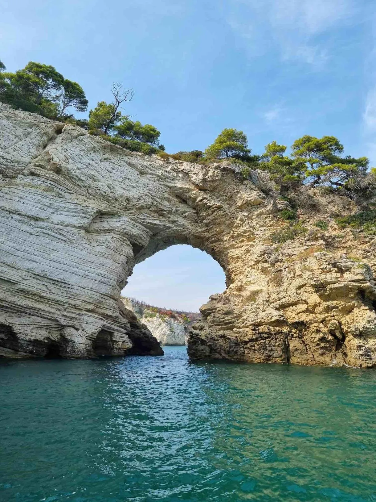 Costeggerete poi la spiaggia di Scialara e la spiaggia di Portonuovo per arrivare all’Arco di San Felice, dove è visibile l’ingresso della grotta Campana piccola, e alla Testa del Gargano.