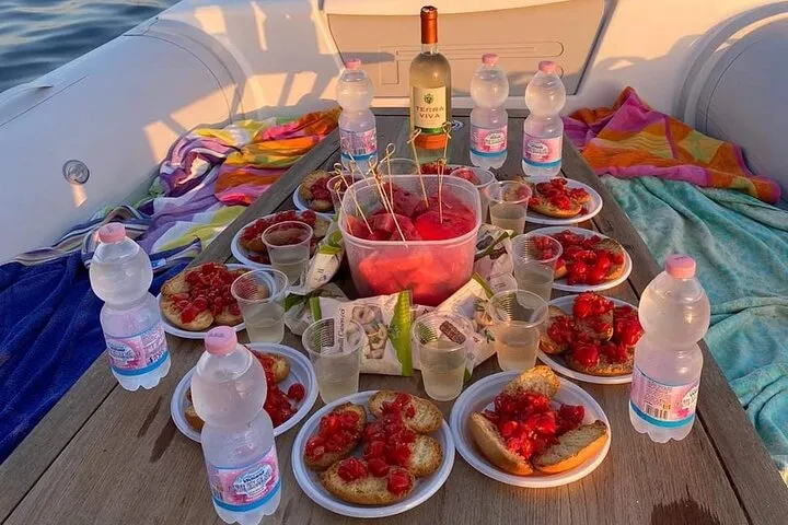 Durante questo tour al tramonto, la flotta si raduna vicino all'Isola, offrendo uno spettacolo del sole rosso fuoco che lentamente scompare dietro il mare, mescolandosi con il cielo. Durante l’escursione vi verrà offerto un aperitivo a base di stuzzichini salentini accompagnati da un drink.
