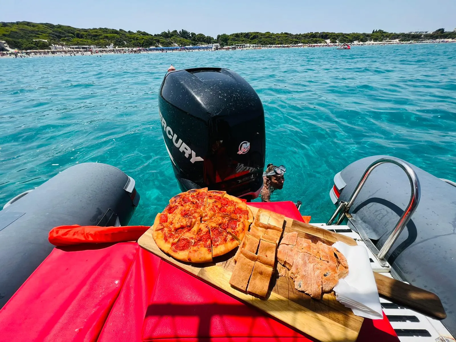 Escursione di gruppo in gommone alla scoperta della costa del Salento, partendo da San Foca e navigando fino a Otranto guidati da uno skipper esperto.