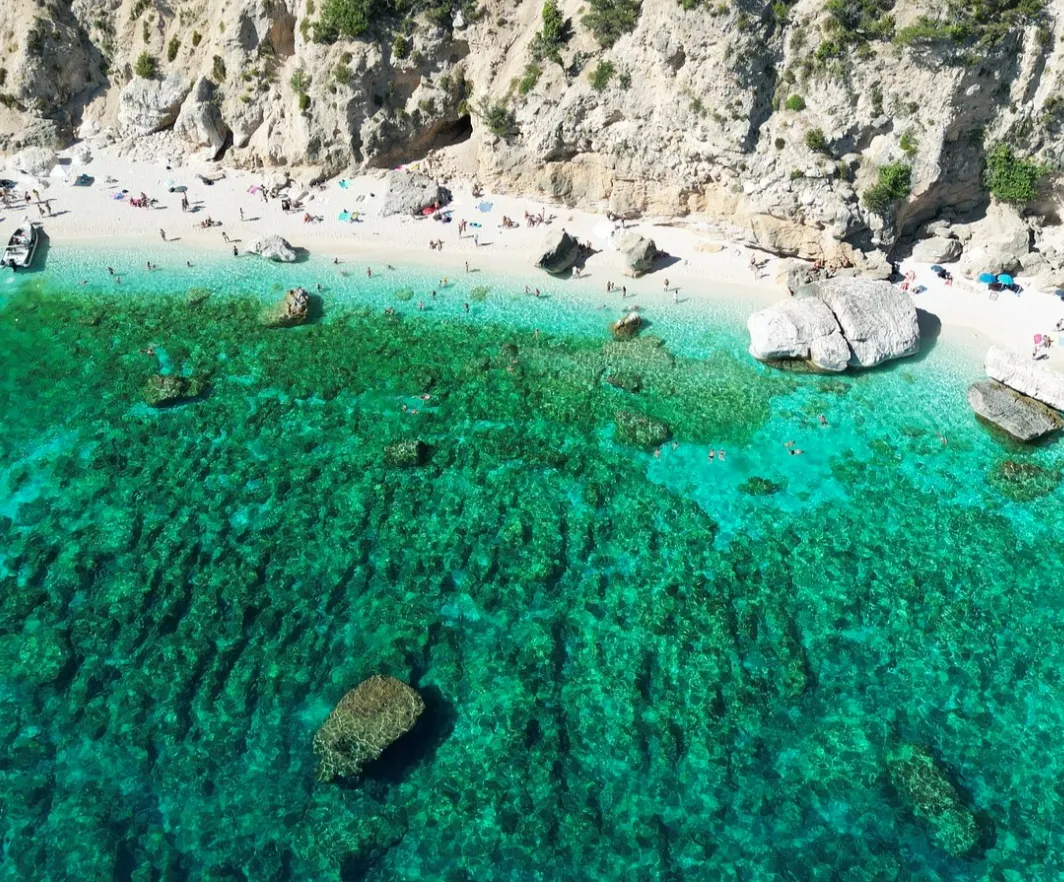 Il tour prevede tre soste lunghe nelle spiagge più belle e incontaminate del Golfo: Cala Mariolu, Cala Biriala e Spiaggia dei Gabbiani, e due soste brevi davanti a Cala Goloritzè e alle Piscine di Venere per fare un bagno dal gommone e nuotare nei fantastici colori turchesi del mare.