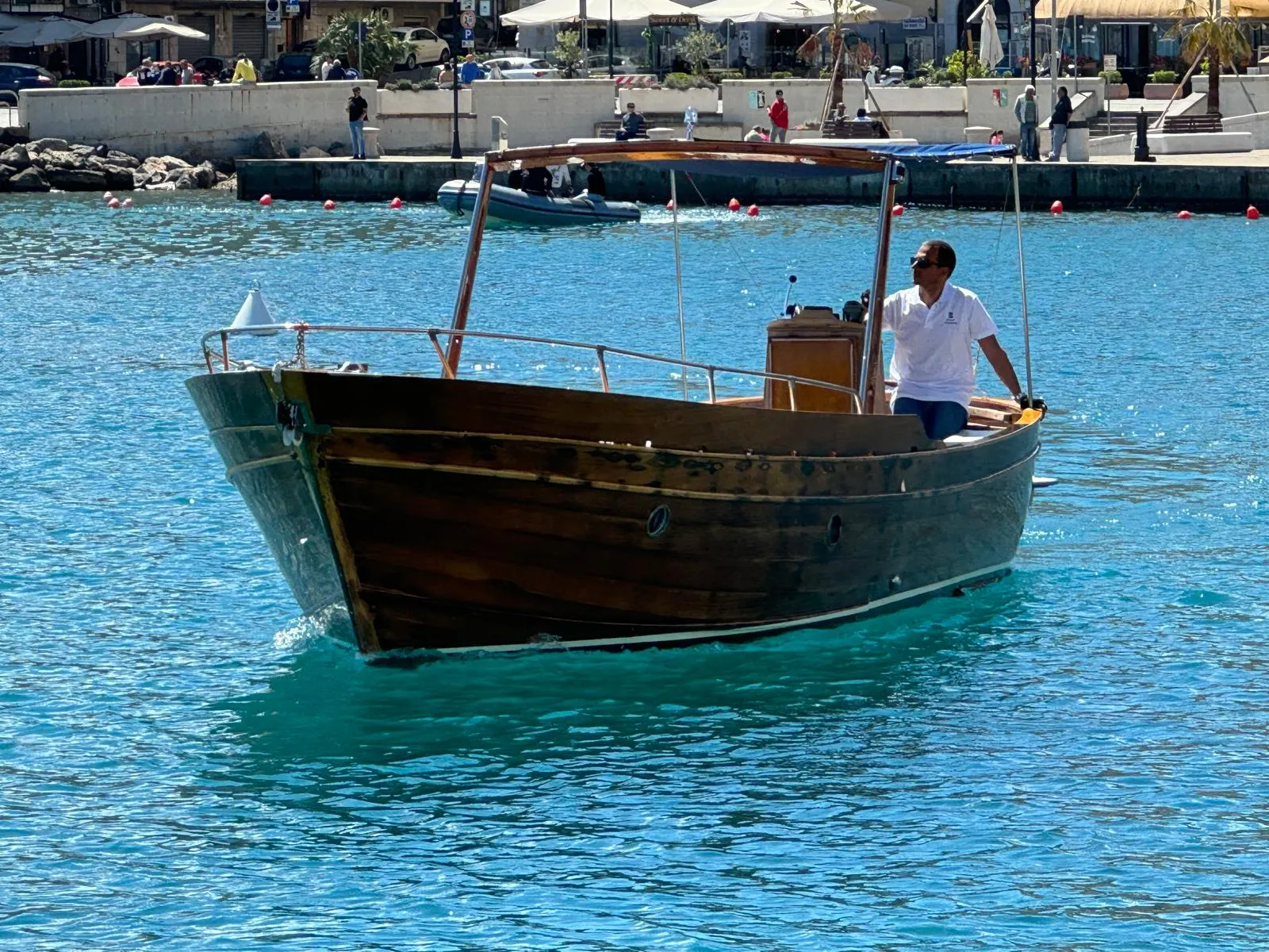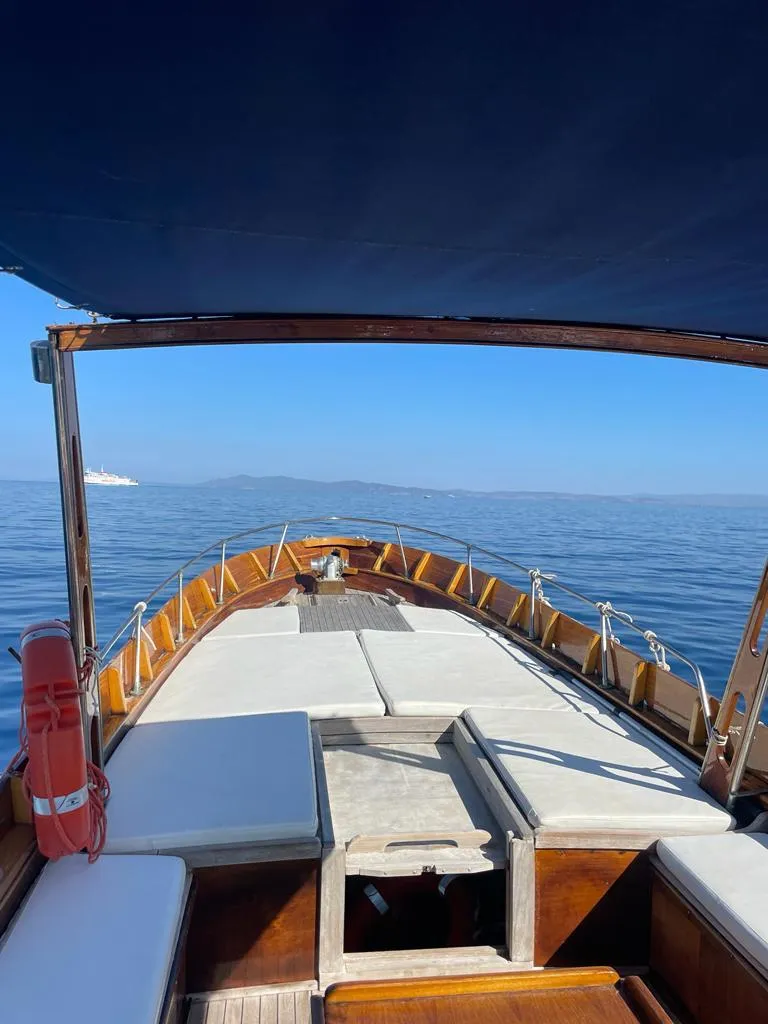 L’imbarcazione è realizzata completamente in legno, ed è dotata di un ampio prendisole e tendalino. A bordo verrà offerto un piccolo spuntino.