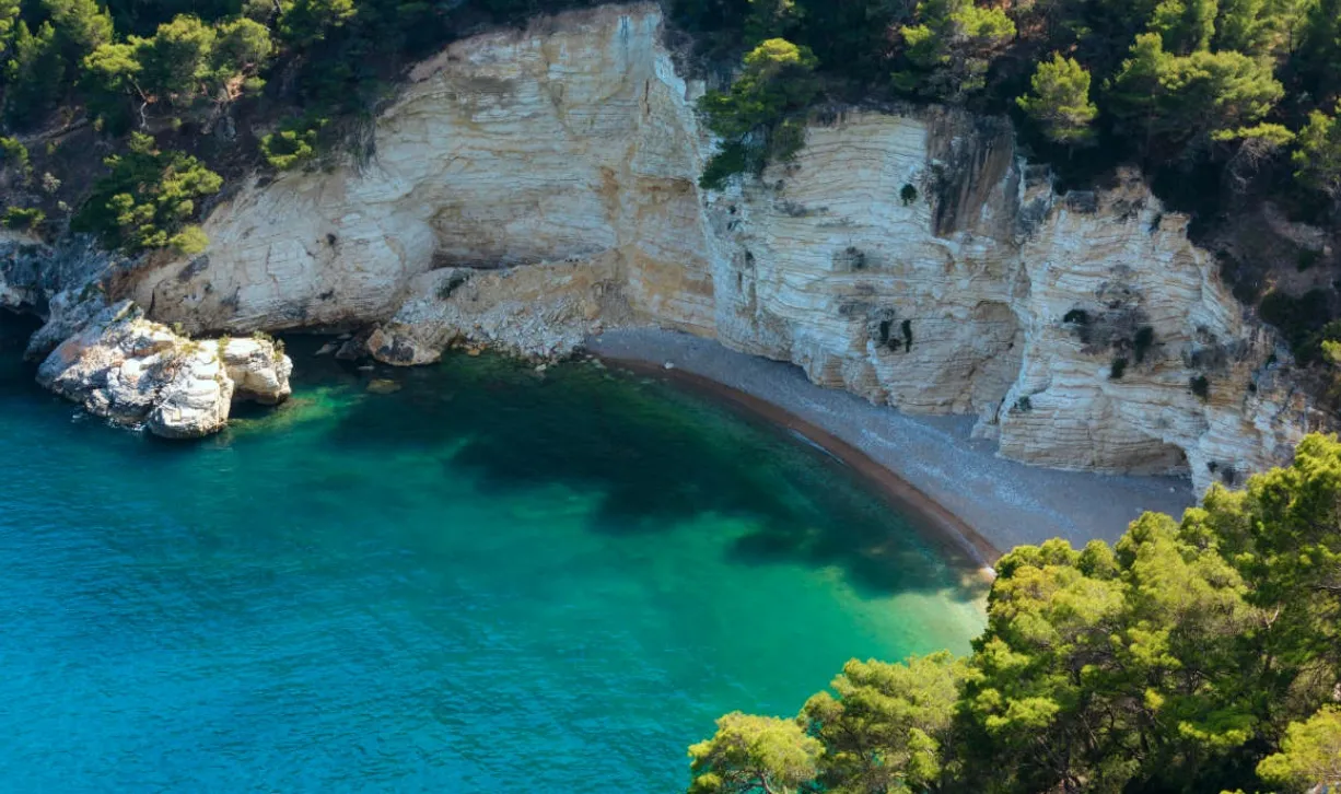 La prima sosta bagno avverrà a circa un’ora dopo aver lasciato il porto turistico in località Porto Greco, una delle baie più mozzafiato del Gargano assieme a Baia Vignanotica e Baia delle Zagare.
