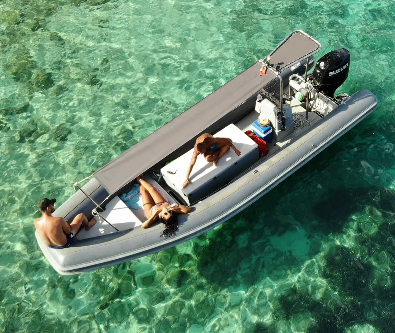 Scopri l'arcipelago della Maddalena a bordo di un gommone dotato di tutti i comfort in compagnia ed immergiti nelle acque della Sardegna in totale relax.