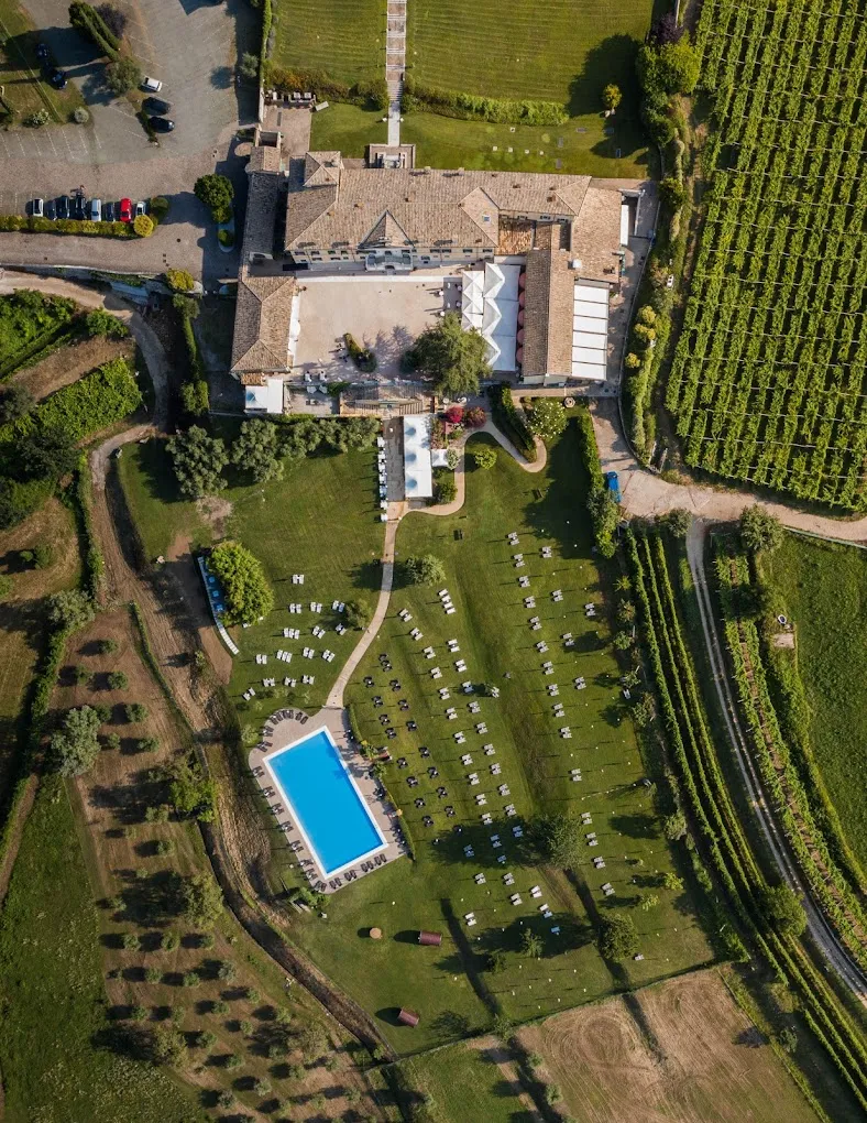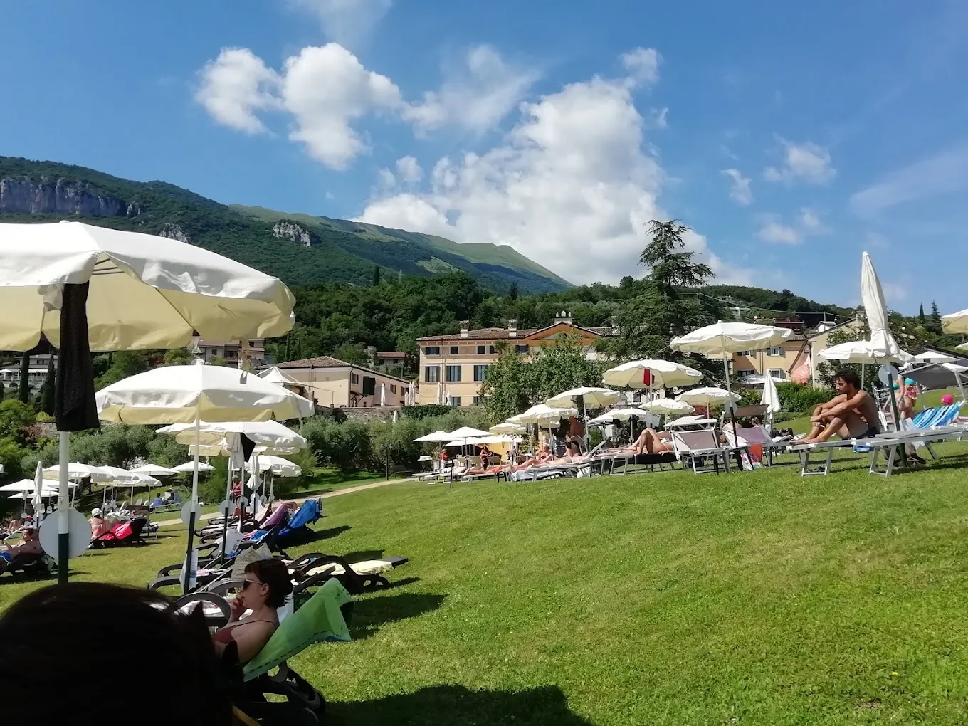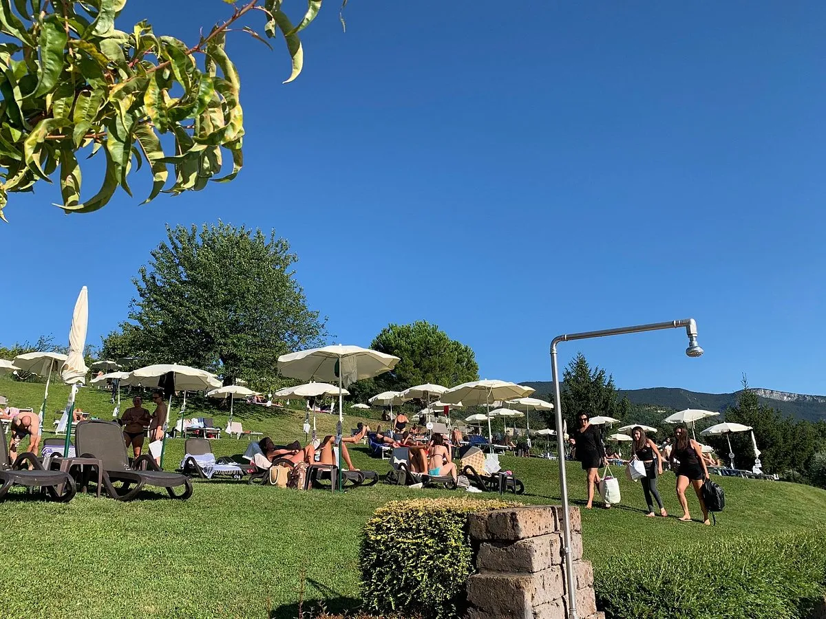 Una rinfrescante piscina circondata da 8 ettari di parco, oltre 300 lettini e ombrelloni immersi in un’oasi di pace, la cornice naturale unica delle colline del lago di Garda.
