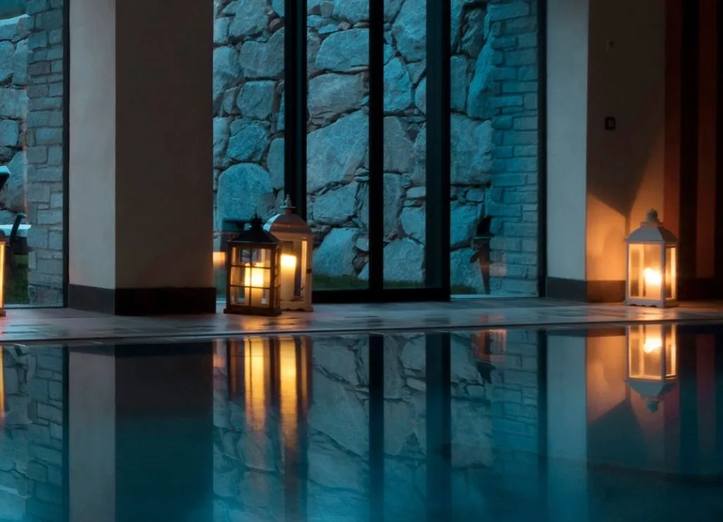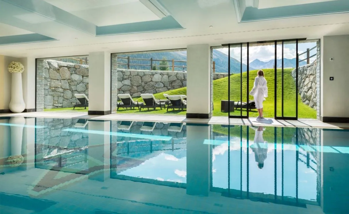Un’ariosa piscina coperta in cui immergersi ed abbandonarsi al relax, con vista da sogno sull’idilliaco scenario alpino, lettini per massaggi, impianto per nuoto controcorrente e idromassaggio. Sale relax, arredate con legno locale e materiali naturali.