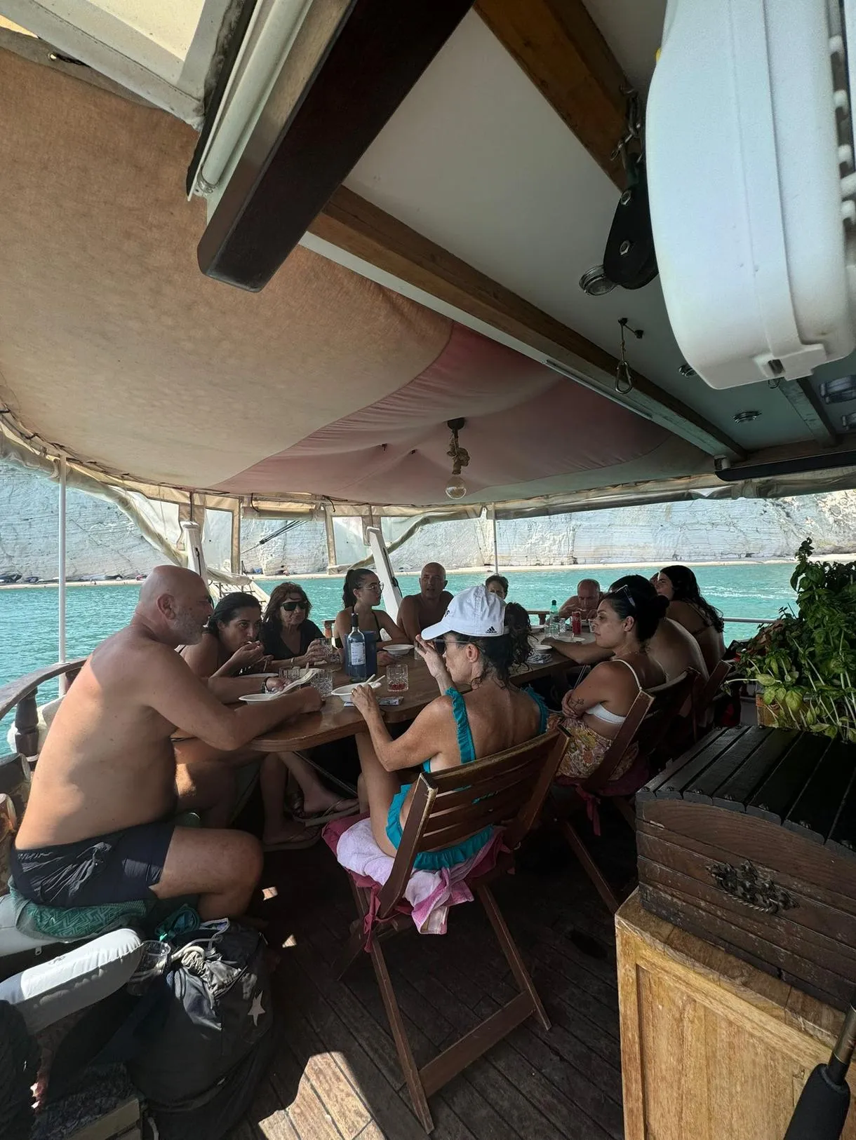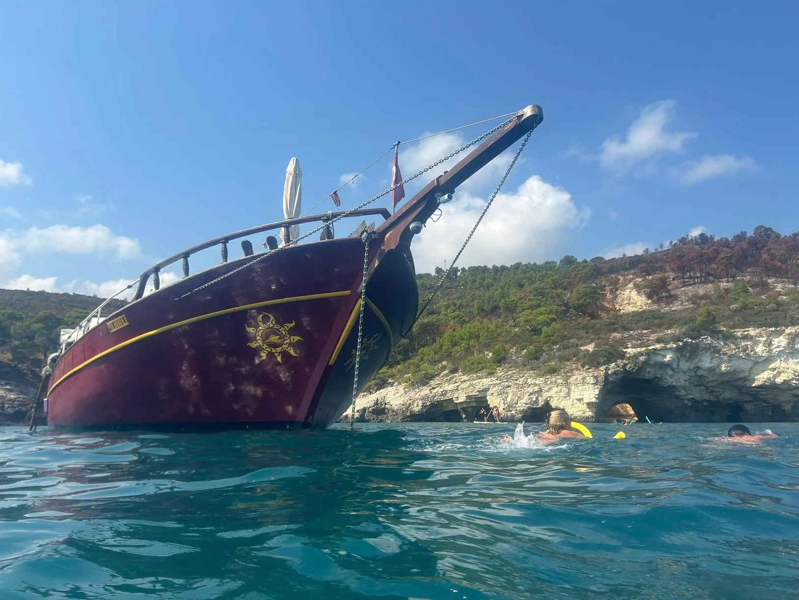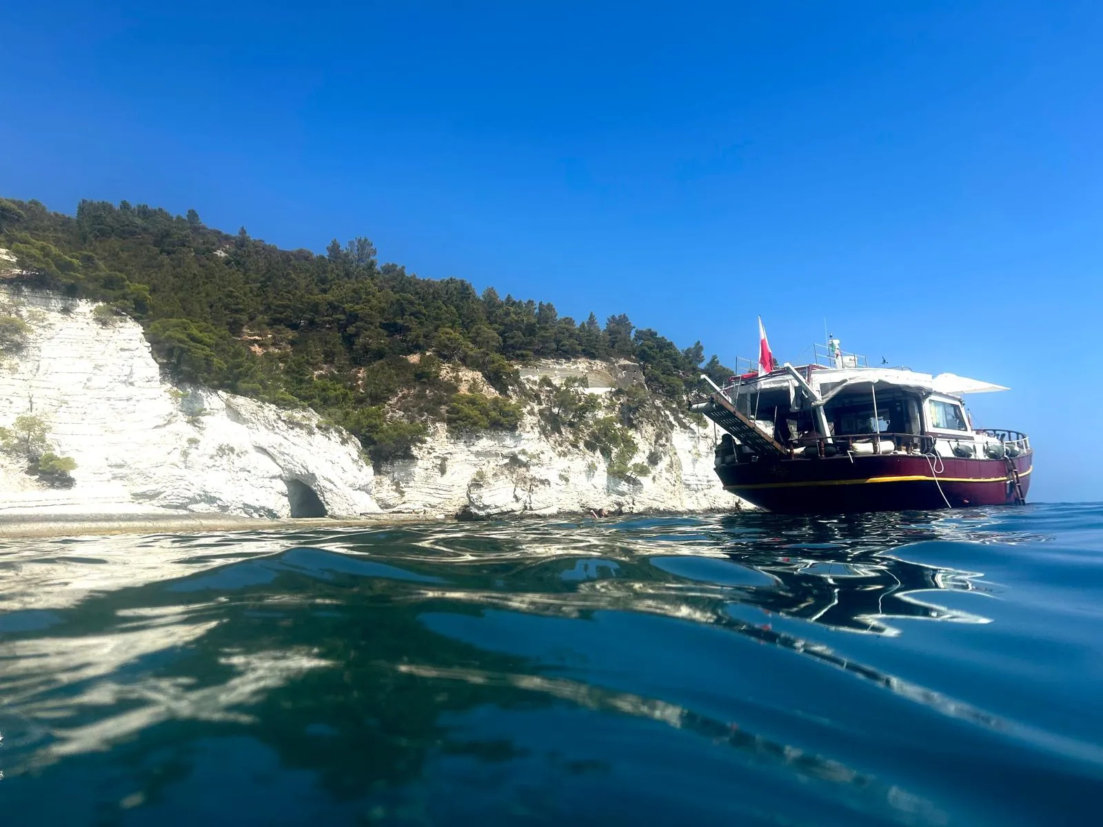 Escursione giornaliera partendo da Vieste a bordo di uno yacht turco con skipper, aperitivo e pranzo a bordo.
