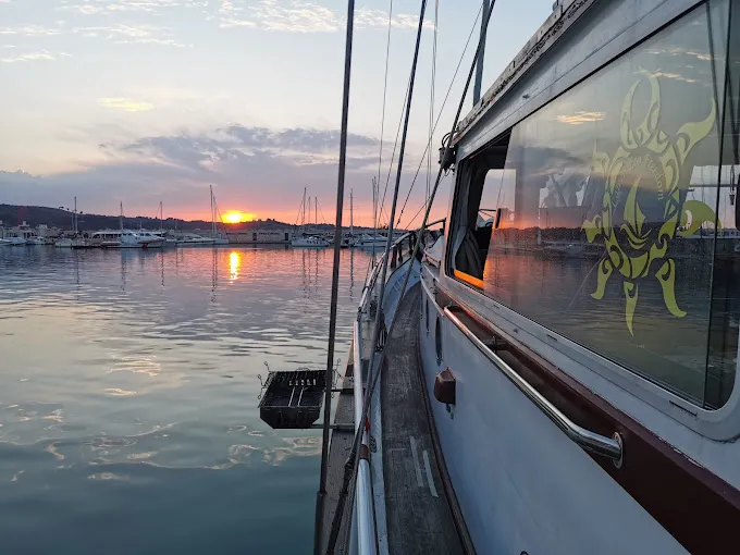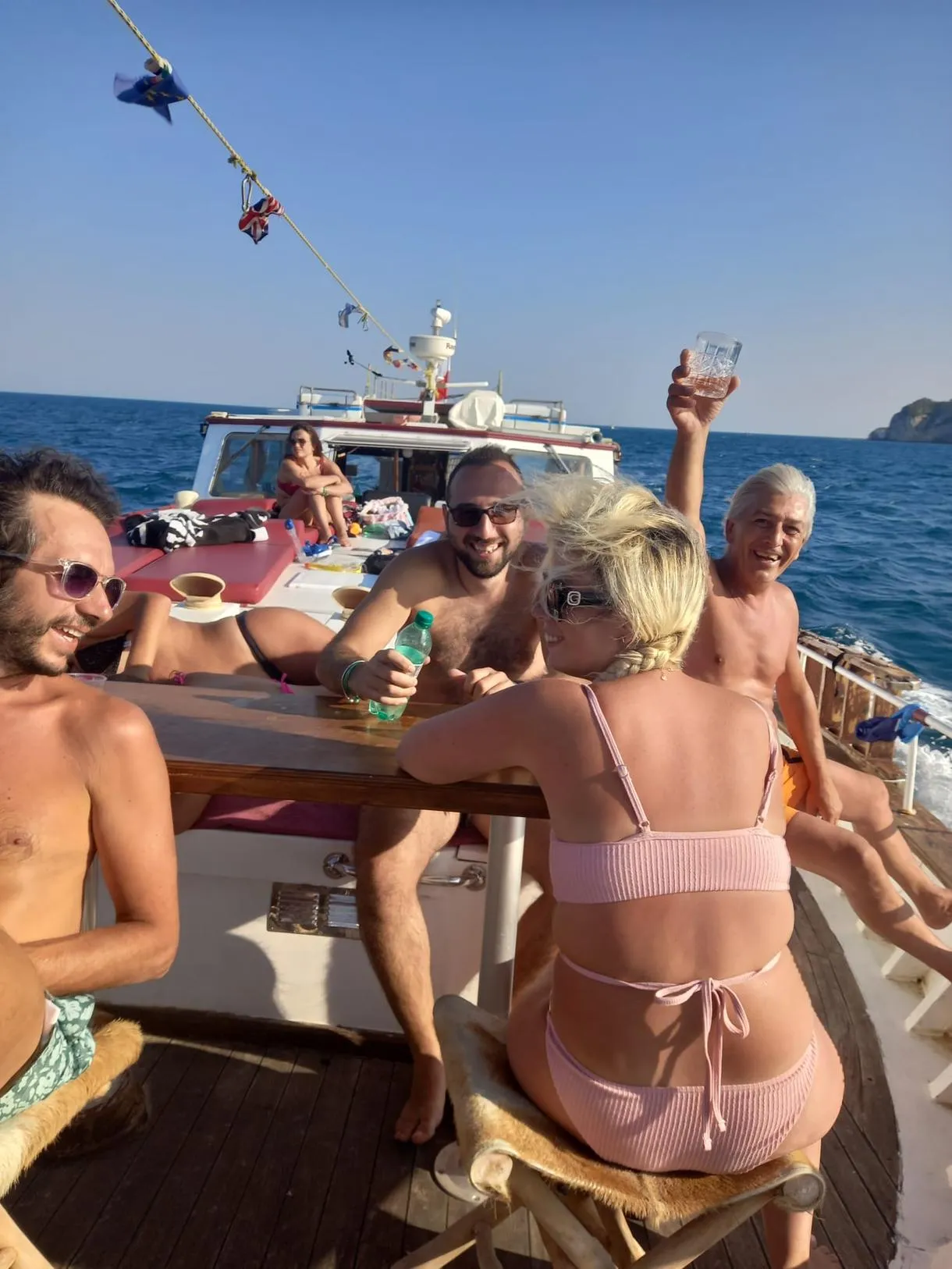 La particolarità di quest'imbarcazione è che presenta, a bordo, una cucina in cui saranno preparati piatti freschi e a base di prodotti locali. Infatti, vi verranno serviti un aperitivo e un pranzo a più portate compreso di vino e acqua.