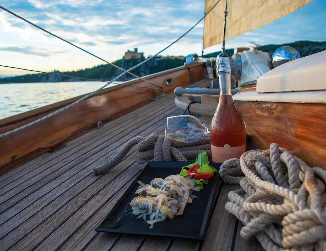 Il giro in barca a vela d'epoca nel Golfo di Trieste con aperitivo è un'esperienza rilassante e meravigliosa che vi permetterà di degustare un delizioso aperitivo con il calar del sole ed immergervi nelle acque cristalline sotto il Castello Miramare.