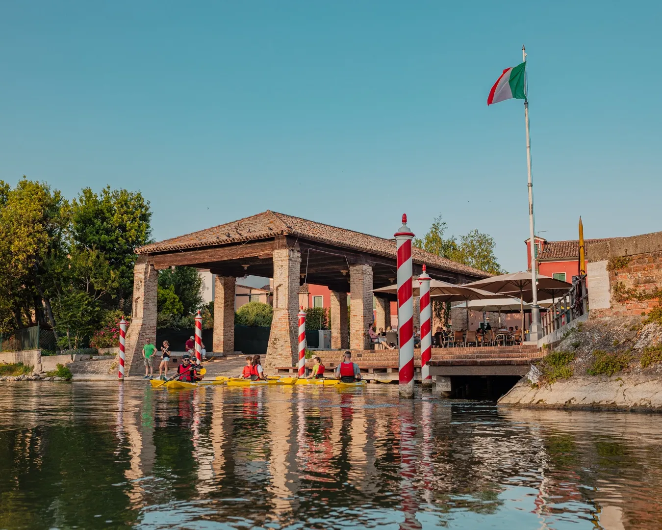 Giro in kayak a Dolo, un piccolo borgo caratteristico, con un bellissimo mulino. Il fiume ha una corrente molto dolce ed è quindi adatto per tutti, anche ai principianti e ai bambini da 12 anni in su.
