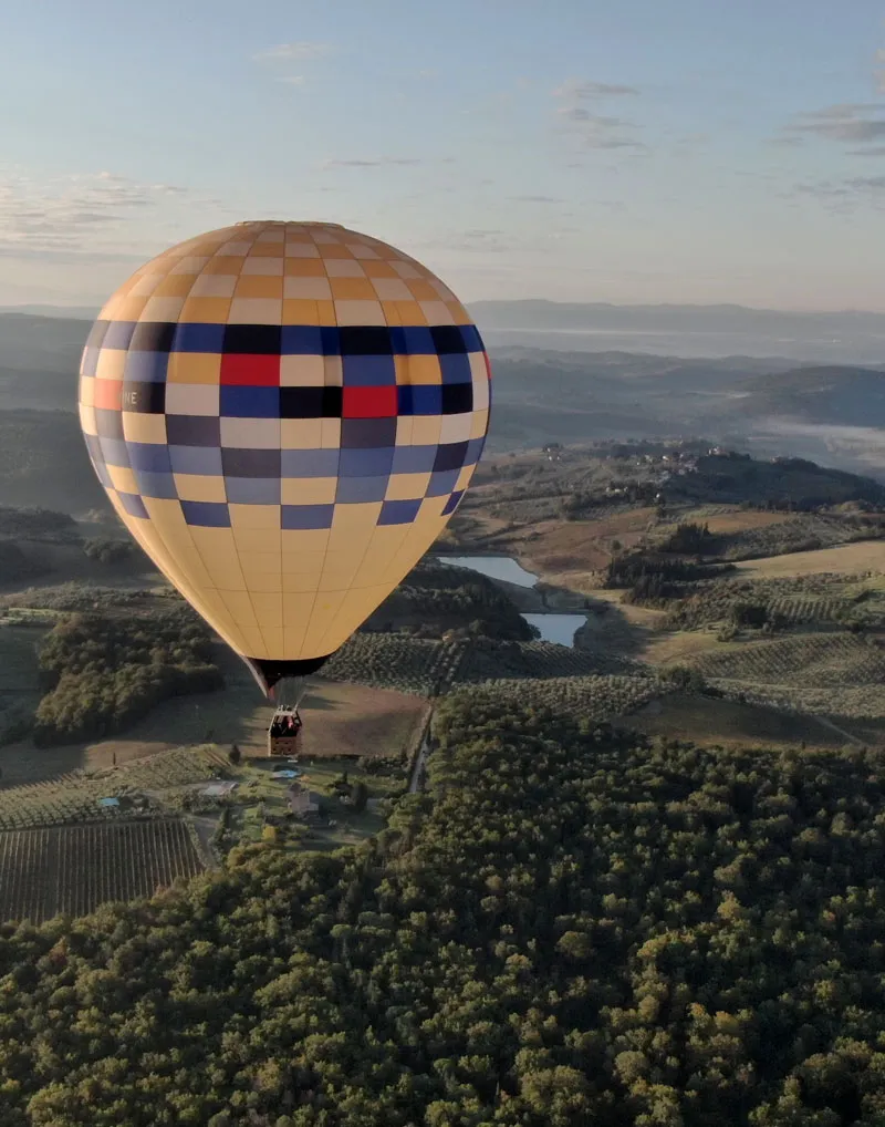 Si parte da Barberino Tavernelle all'alba ed il percorso del volo varia ogni volta in base all'intensità e direzione del vento. Durante l'esperienze potrete ammirare i vari castelli, borghi e vigneti che caratterizzano le campagne toscane. In una giornata limpida, se si vola abbastanza alti si può vedere anche il Tirreno in lontananza.