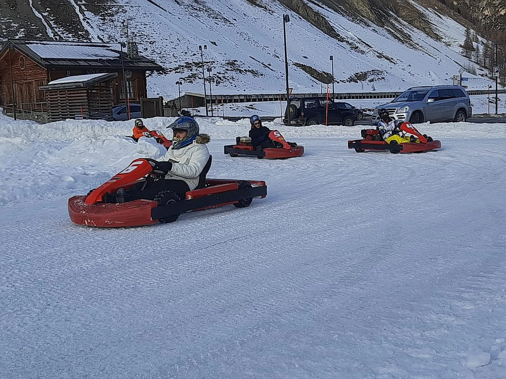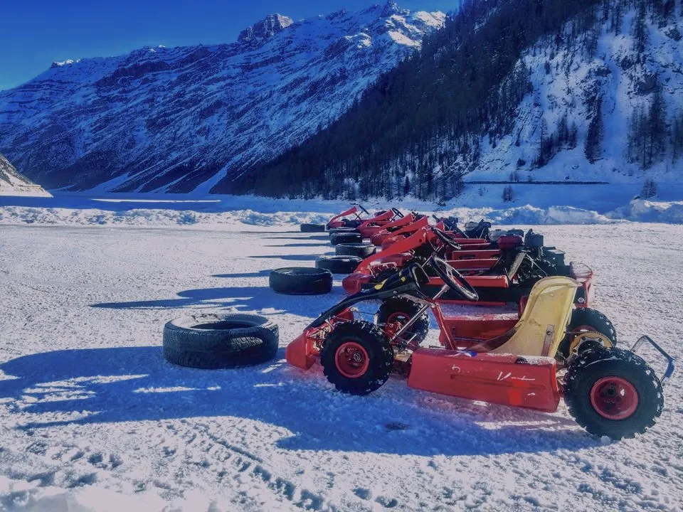 Il giro in pista con gli ice-kart a Livigno è un'occasione unica per sifdare i vostri amici in una corsa adrenalinica alla guida di un go kart su una pista ghiacchiata.