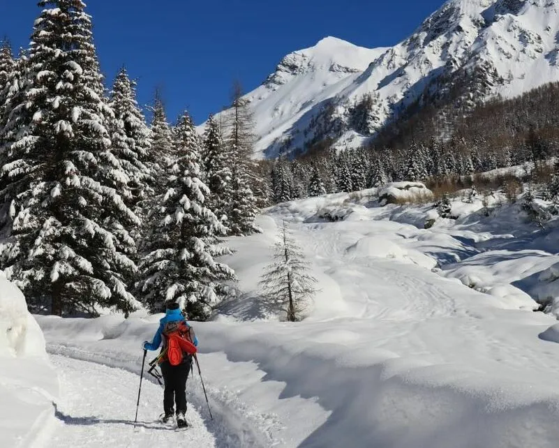 Si tratta di un'escursione guidata con le ciaspole negli splendidi paesaggi della natura innevata di Bormio in provincia di Sondrio.