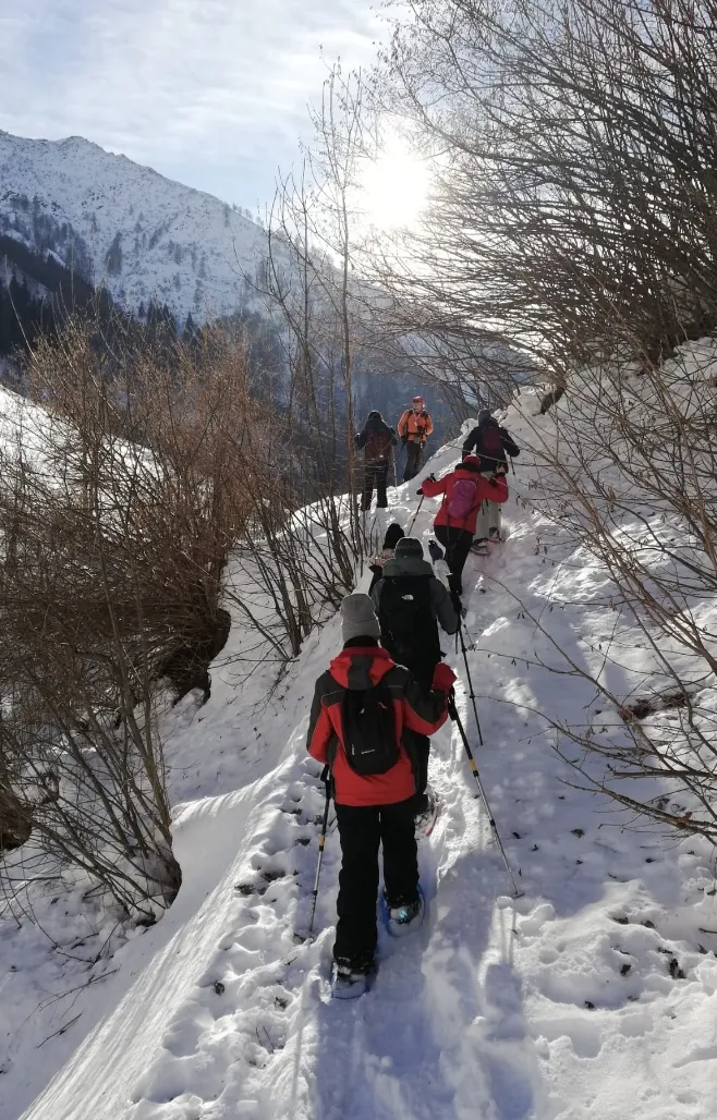 È richiesta un'attrezzatura composta da: Zaino, calzature calde con suola scolpita, giacca, berretto, guanti. Ciaspole e bastoncini (non compresi nel prezzo) sono obbligatori e possono essere noleggiati in loco per 15€ (nella quota è compreso il kit ARTVA, Pala e Sonda).