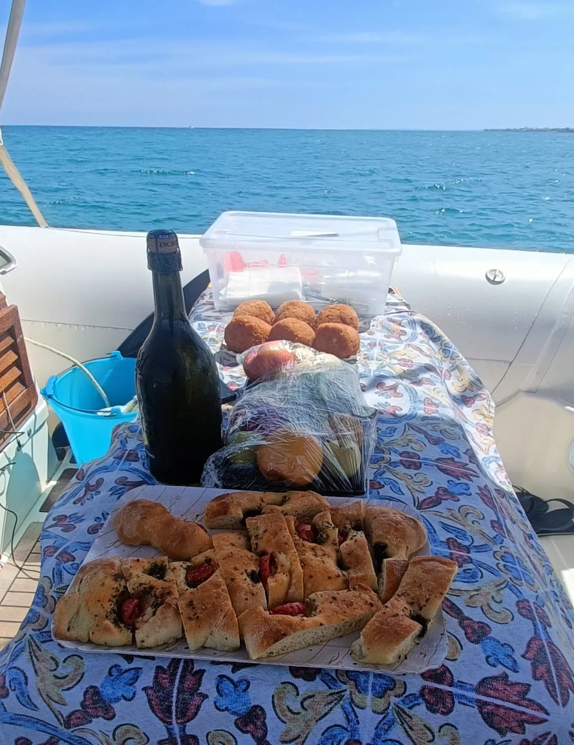 Durante l'uscita verranno effettuate alcune soste per fare il bagno in mare e vi verrà servito un aperitivo a base di prodotti tipici siciliani.