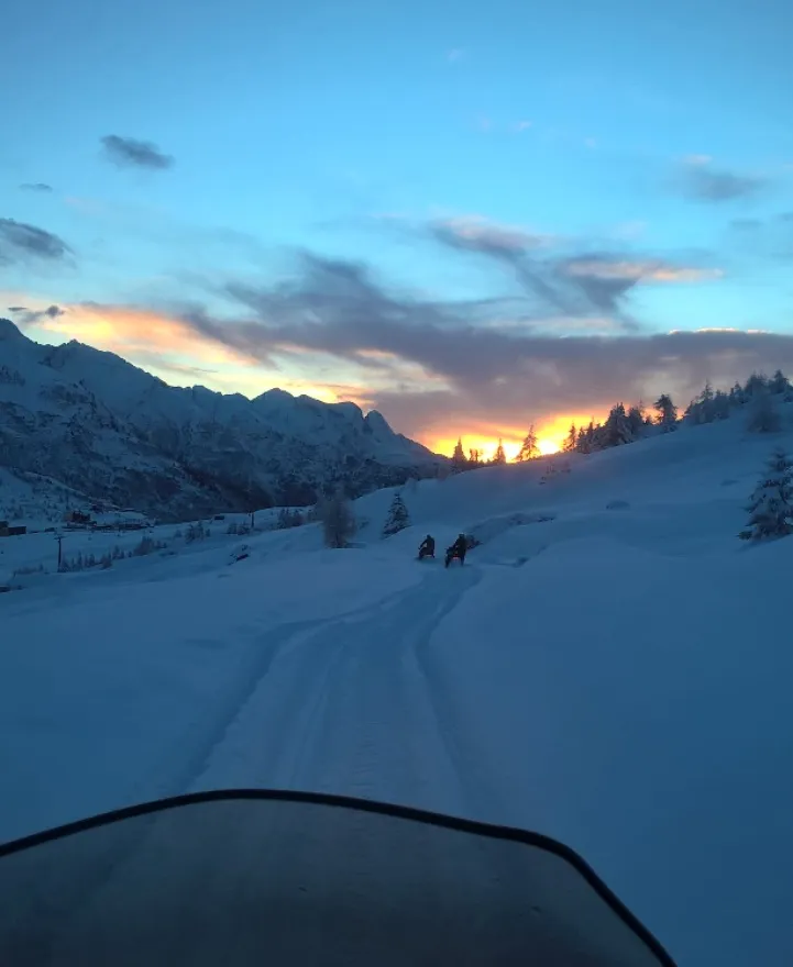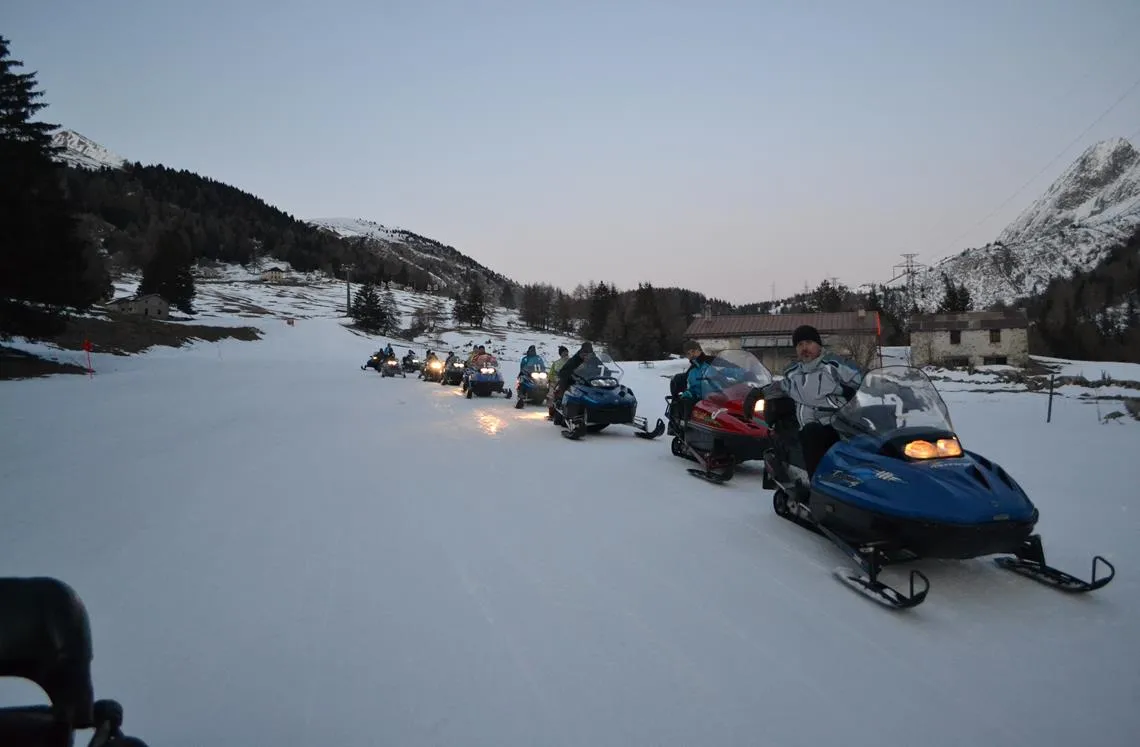 Escursione notturna in motoslitta con partenza da Passo del Tonale alle ore 19:00 circa. Il giro in motoslitta durata indicativa di 1 ora, dopodiché si sosta presso un ristorante storico direttamente sulle piste da sci per cenare.