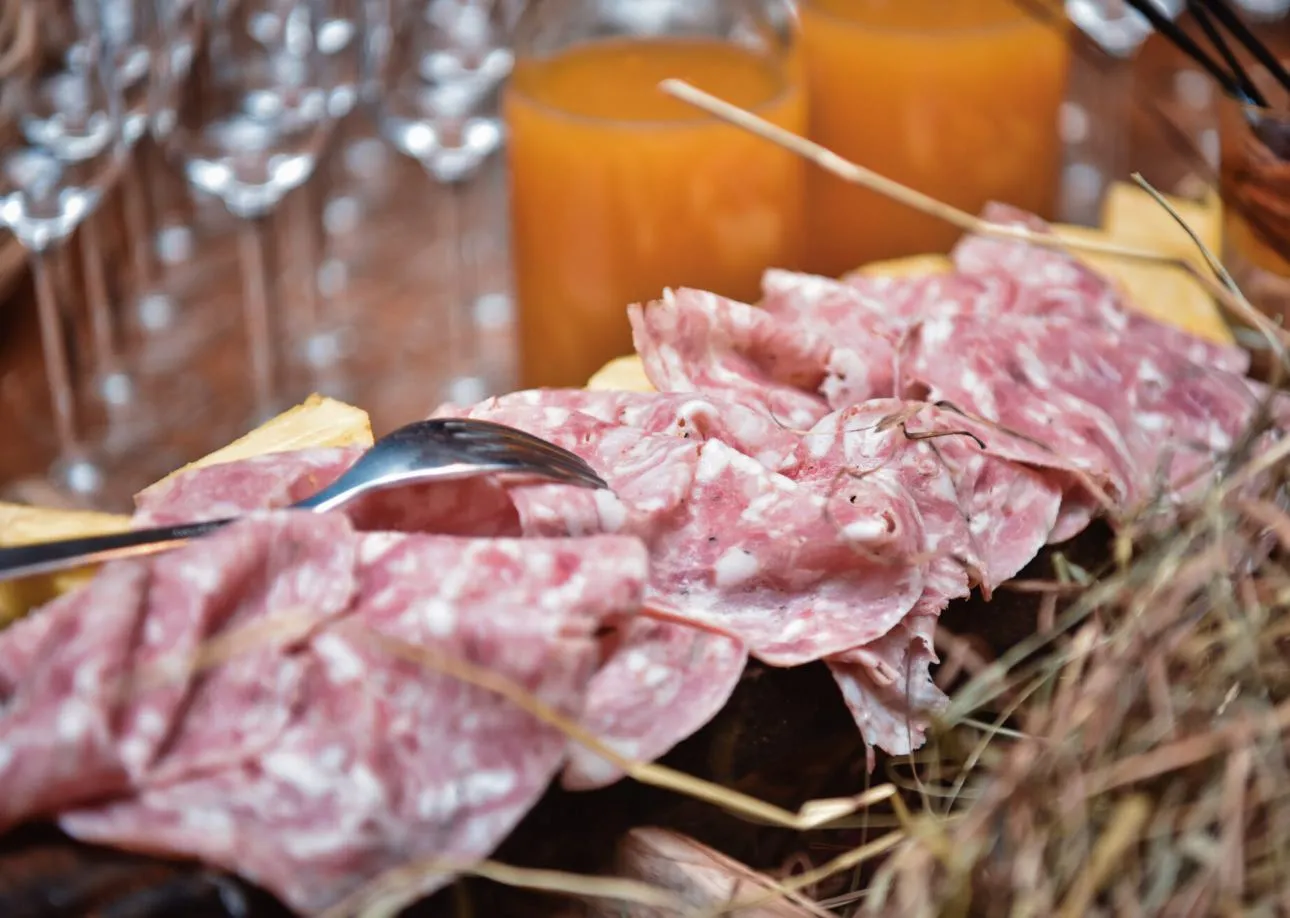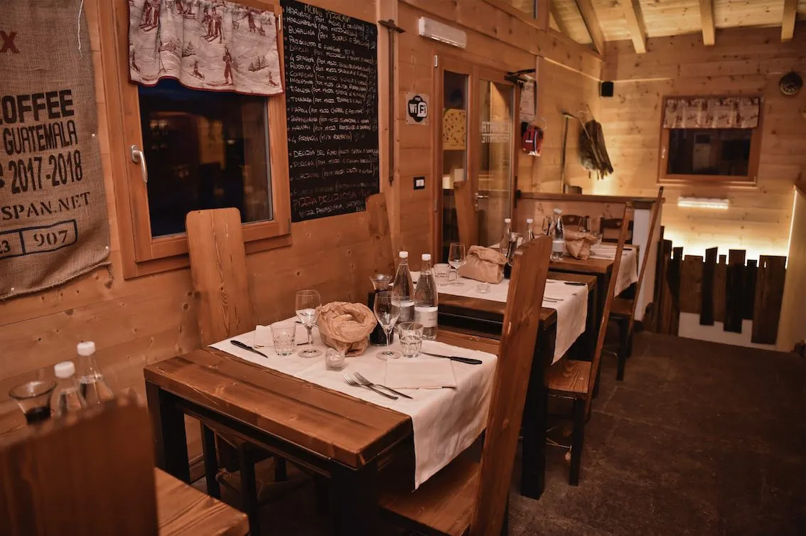 Una volta arrivati alla baita, si rimarrà in quota dalle 19:00 alle 22:00 circa. Si viene accolti da un aperitivo ed a seguire verrà servita la cena tipica piemontese in rifugio. Il menù è composto da antipasti, primo, secondo e dolce, vino e bevande inclusi. Eventuali intolleranze vanno comunicate prima dell'escursione alla guida.
