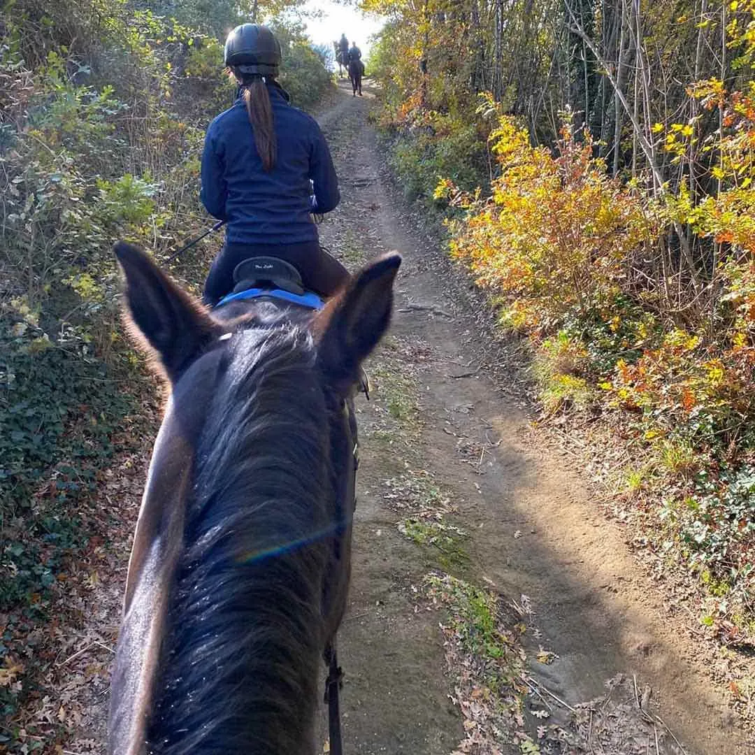 L’abbigliamento consigliato per un'escursione a cavallo è di pantaloni lunghi (per prevenire irritazione alle gambe e piccole ferite date dai rametti che nel bosco possono graffiare) e scarpe sportive per non rischiare di farsi male salendo e scendendo da cavallo.