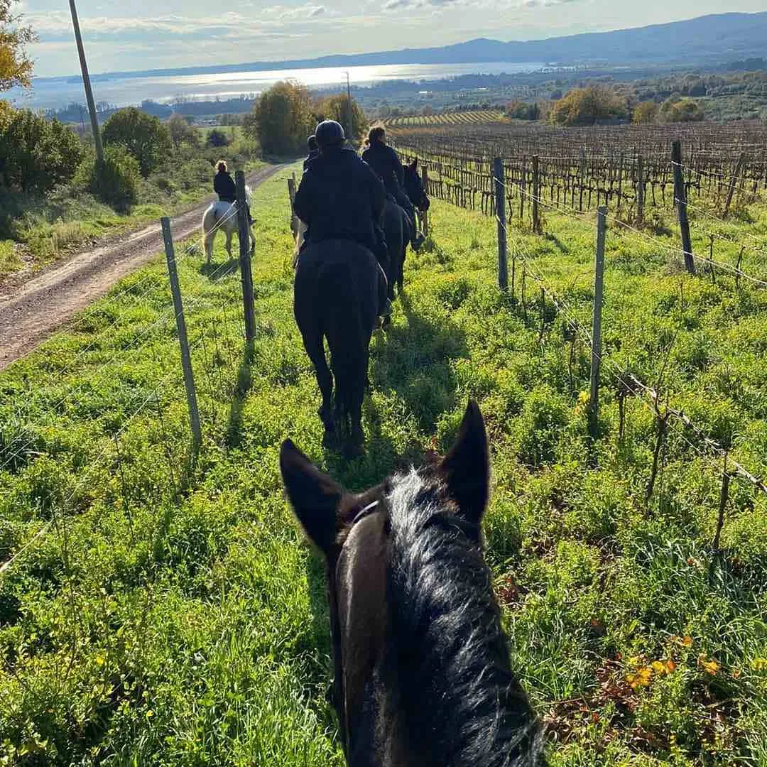 La passeggiata a cavallo lungo le rive del lago di Bolsena tra le tombe etrusche può avere una durata di cira 1h e 30min o di 2 ore, a vostra scelta.
