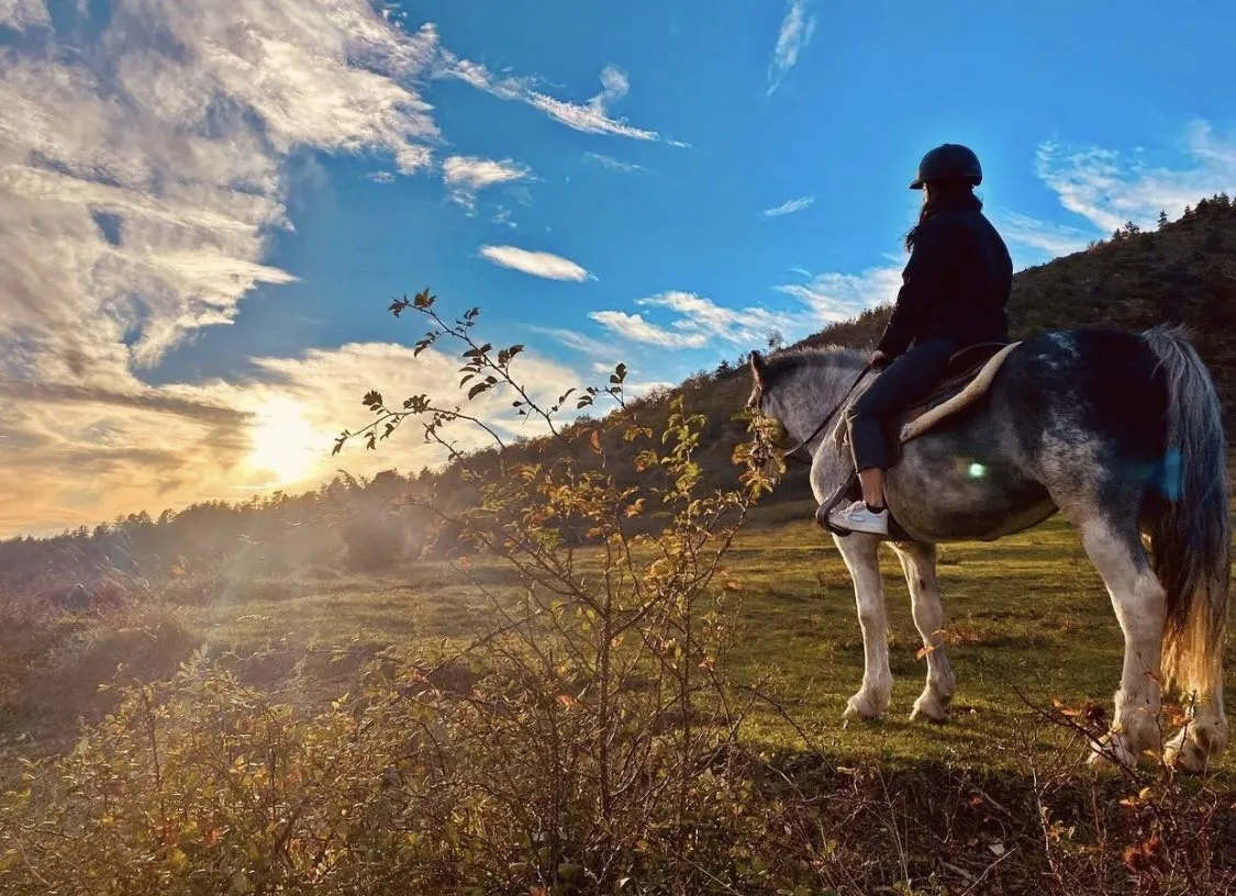 Per la gita a cavallo è consigliato un abbigliamento comodo, pantaloni lunghi, scarpe chiuse, guanti e casco da equitazione (fornito sul posto).