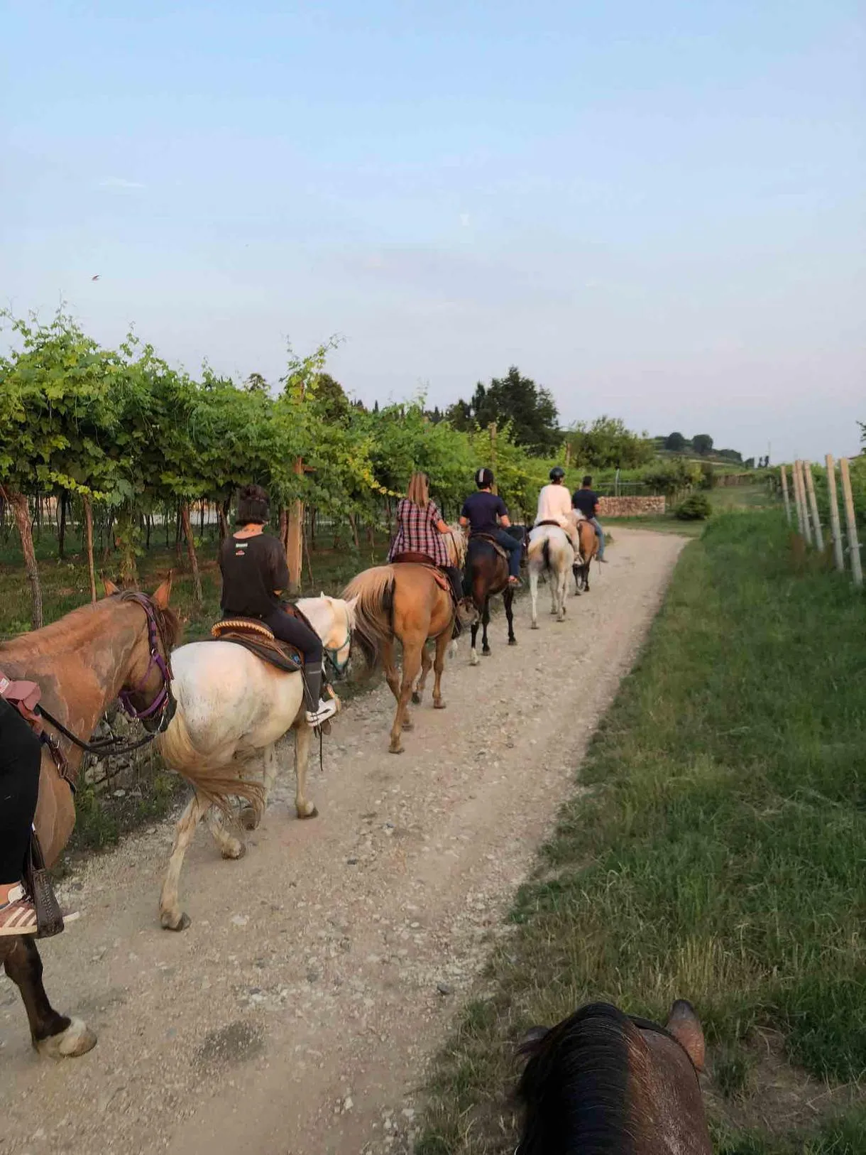 L’escursione è adatta anche a principianti che non hanno mai cavalcato. In base alla durata della passeggiata il percorso varia in lunghezza. Si passeggia in mezzo alla campagna tra scorci di borghi tipici e cantine. Il panorama è sempre bellissimo e la prospettiva di certo inconsueta.