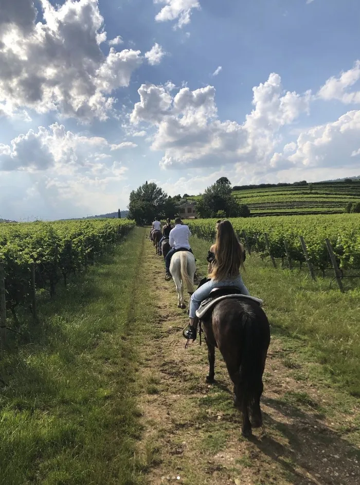 Passeggiata a Cavallo tra le colline della Valpolicella, con partenza da San Pietro in Cariano, lungo percorsi immersi nella natura. L’esperienza permette di immergersi, in sella al cavallo, tra i vigneti del rinomato e pittoresco territorio noto anche per la produzione del vino Valpolicella.
