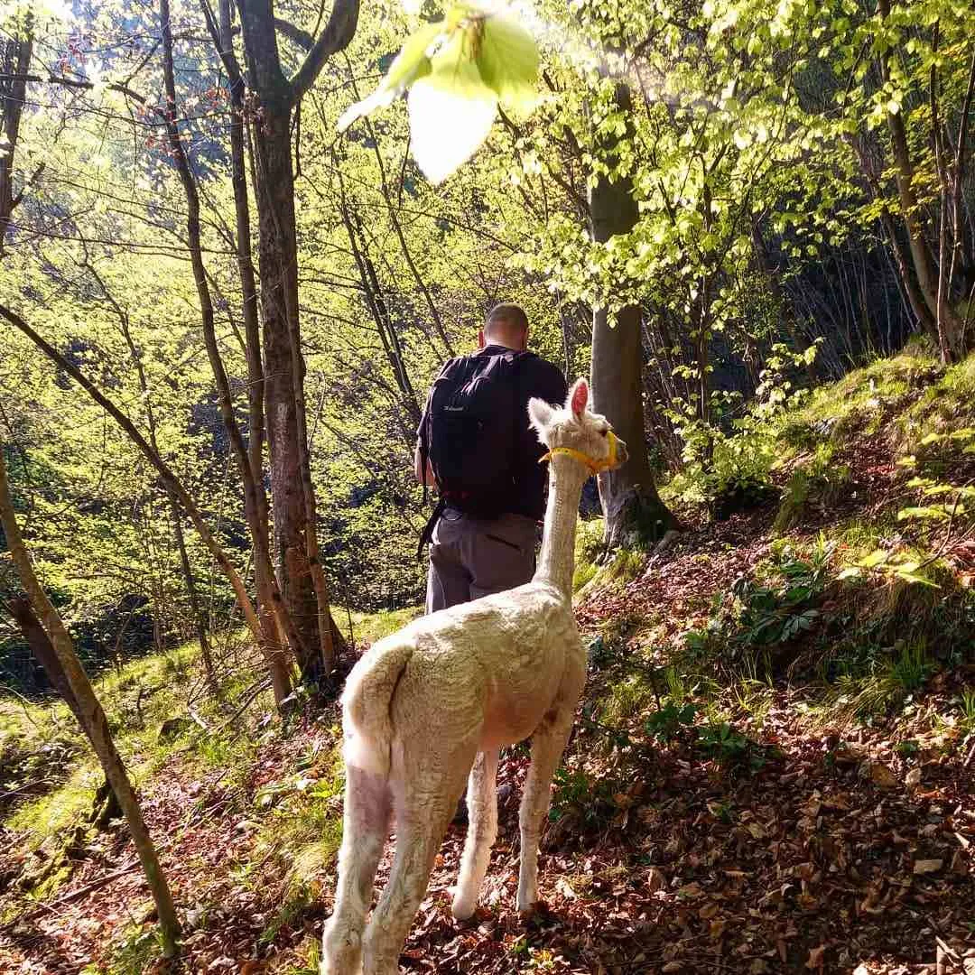 Passeggiata con alpaca al Lago d'Iseo in Valcamonica