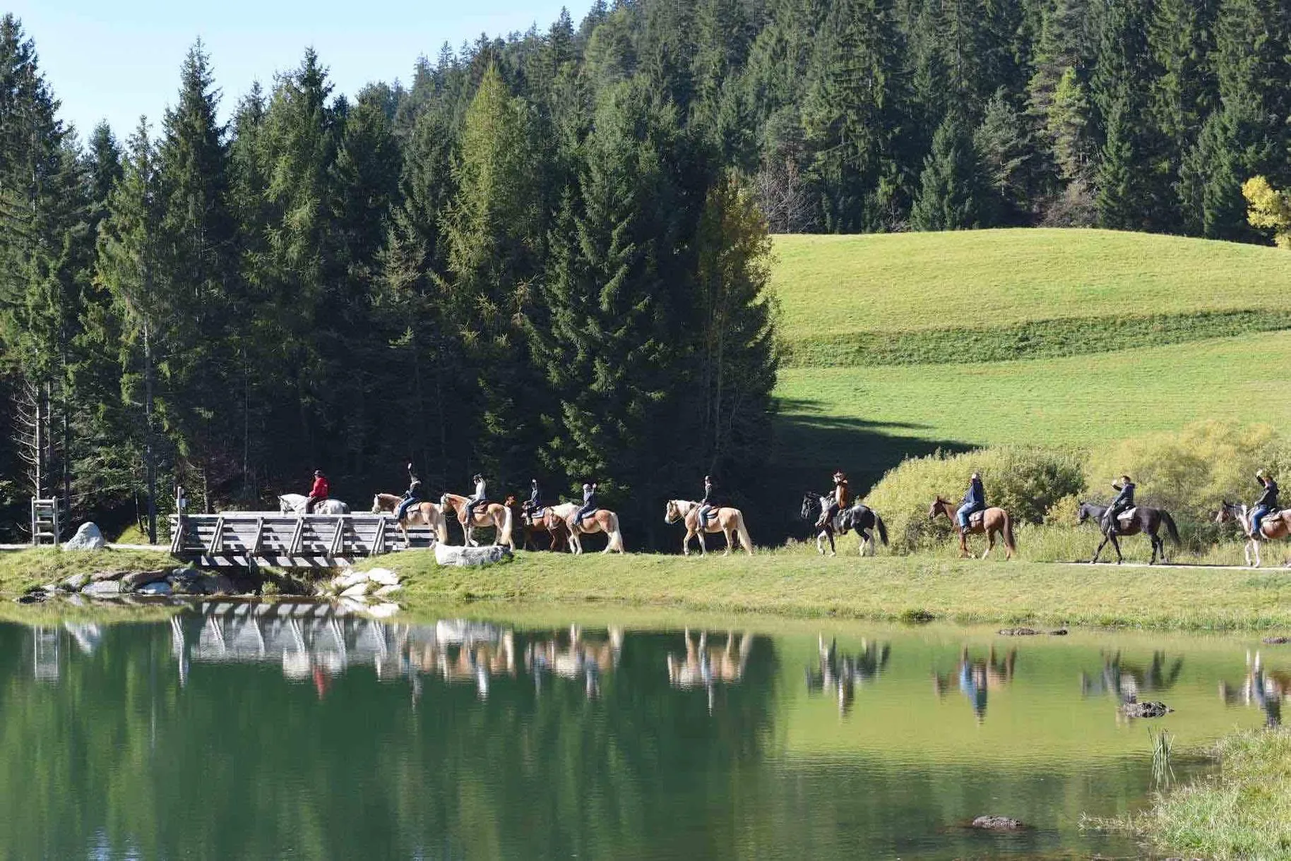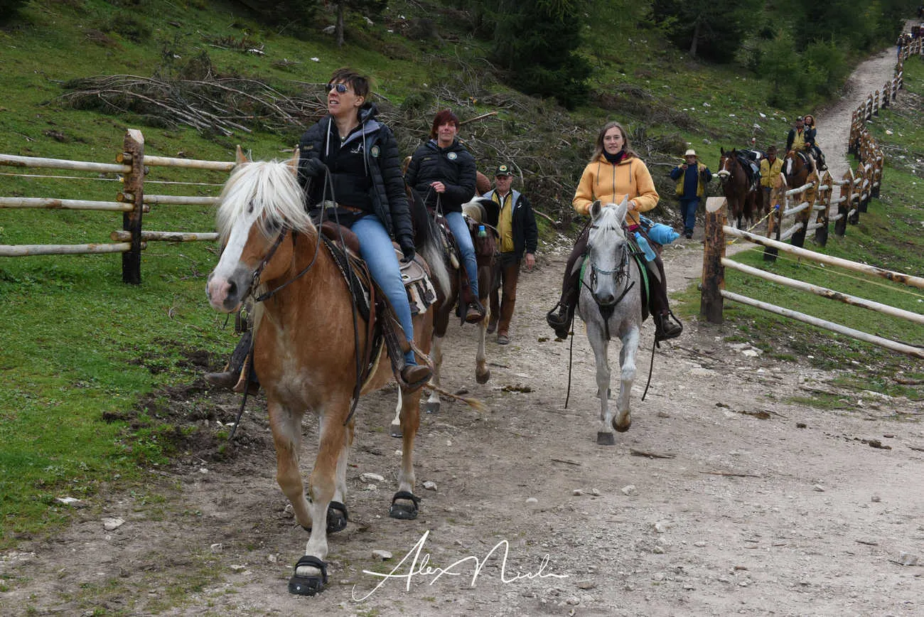 Passeggerete a cavallo nella quiete dei boschi delle Dolomiti e, se acquistato, dopo la passeggiata di 2 ore, potrete fare un pranzo o una cena con prodotti locali in agriturismo.