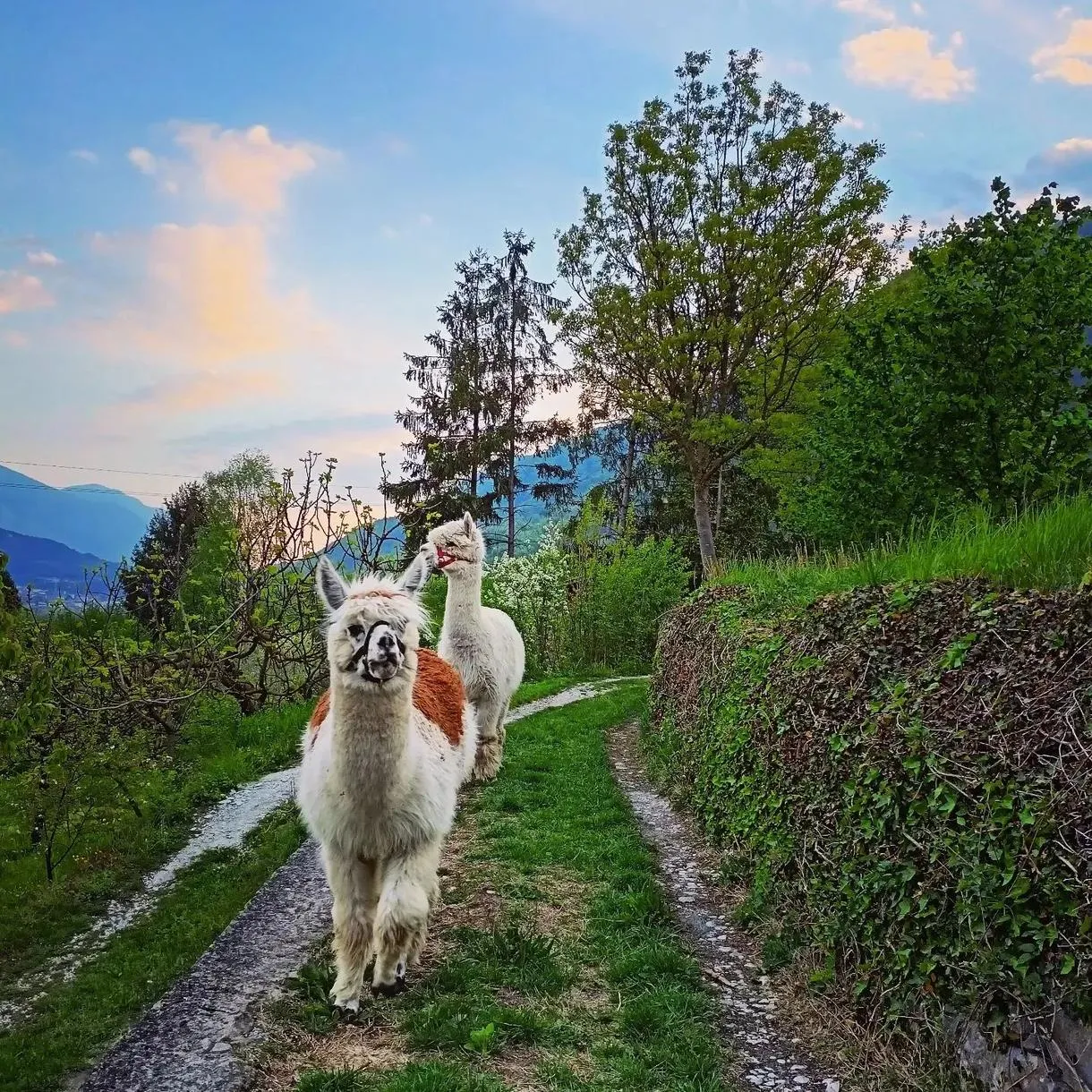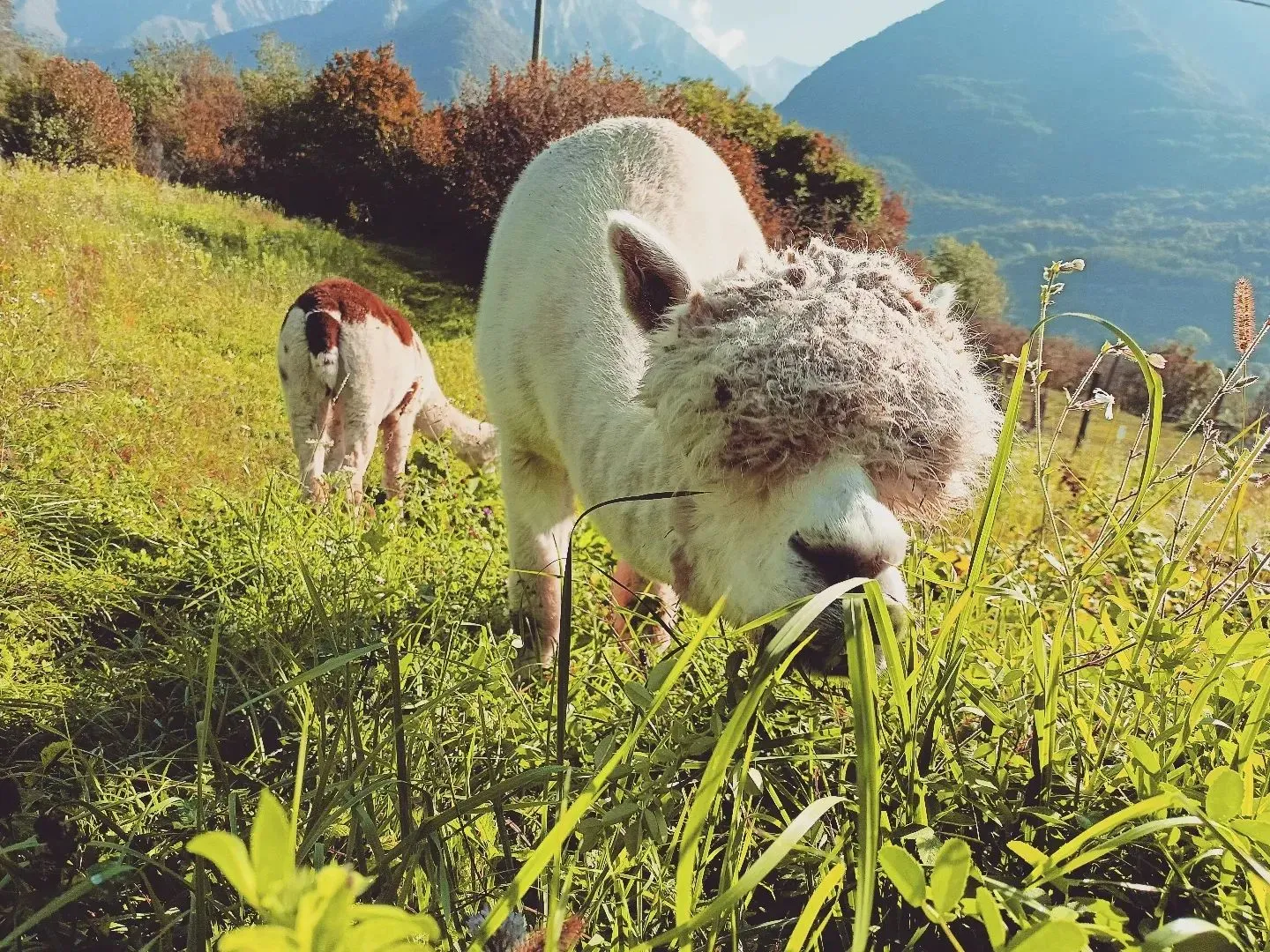 La passeggiata con alpaca in a Lesine, in Val Camonica, è un’esperienza da vivere in compagnia di animali docili e curiosi, addestrati a essere portati facilmente a passeggio.