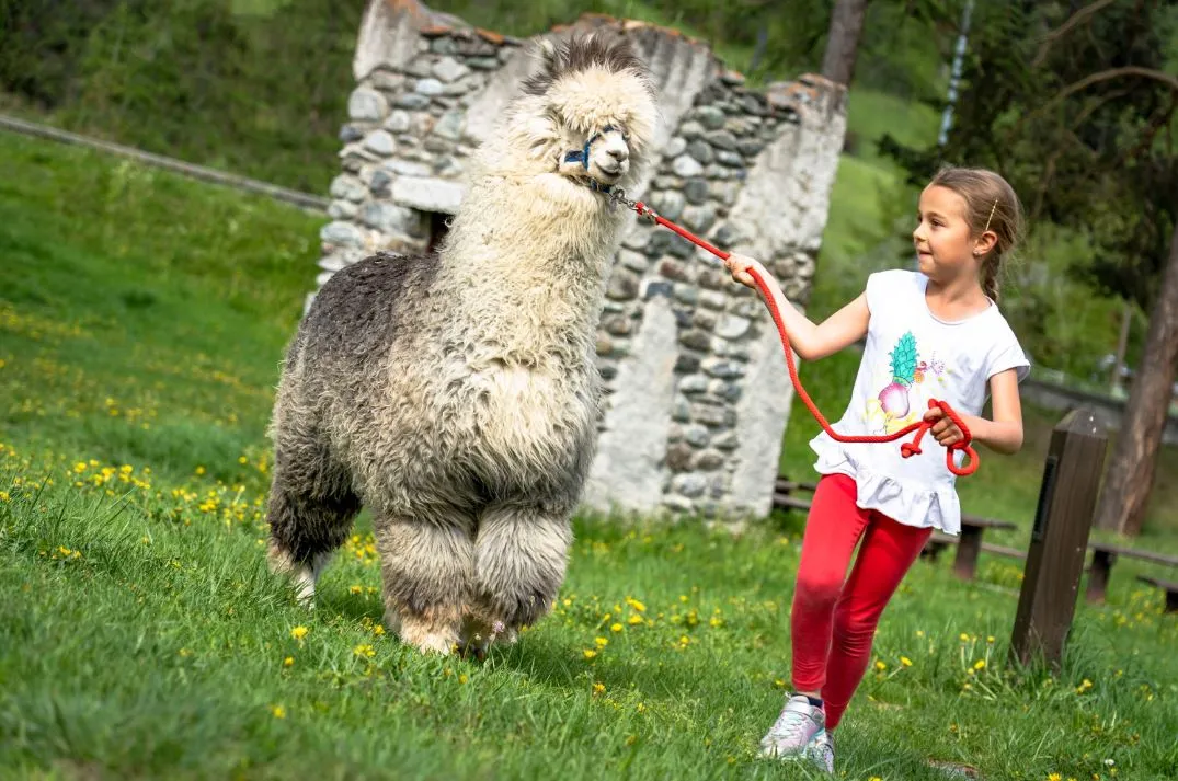 La passeggiata con alpaca in a Valdidentro tra Bormio e Livigno è un’esperienza tutta da vivere in compagnia di animali docili e curiosi, addestrati a essere portati facilmente a passeggio. Gli alpaca hanno un buon carattere e un aspetto dolcissimo e simpatico.