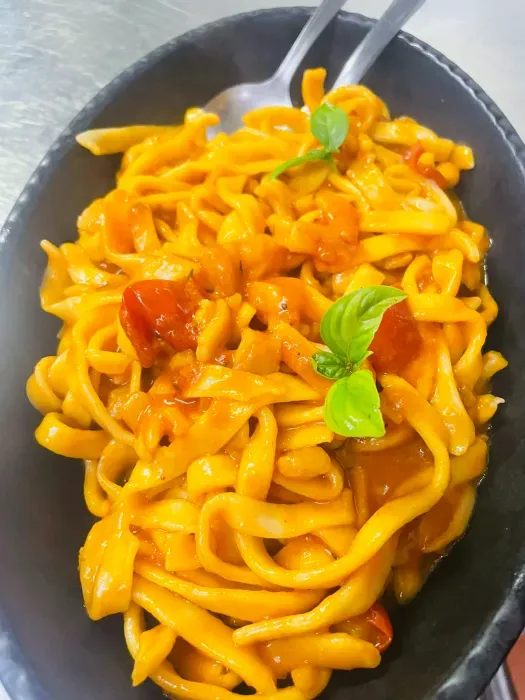 Il menù "Vino illimitato" è composto da un antipasto ricco, primo, secondo, dessert, e caffè. Il tutto è accompagnato da mezzo litro di rosso o bianco, e un amaro finale.