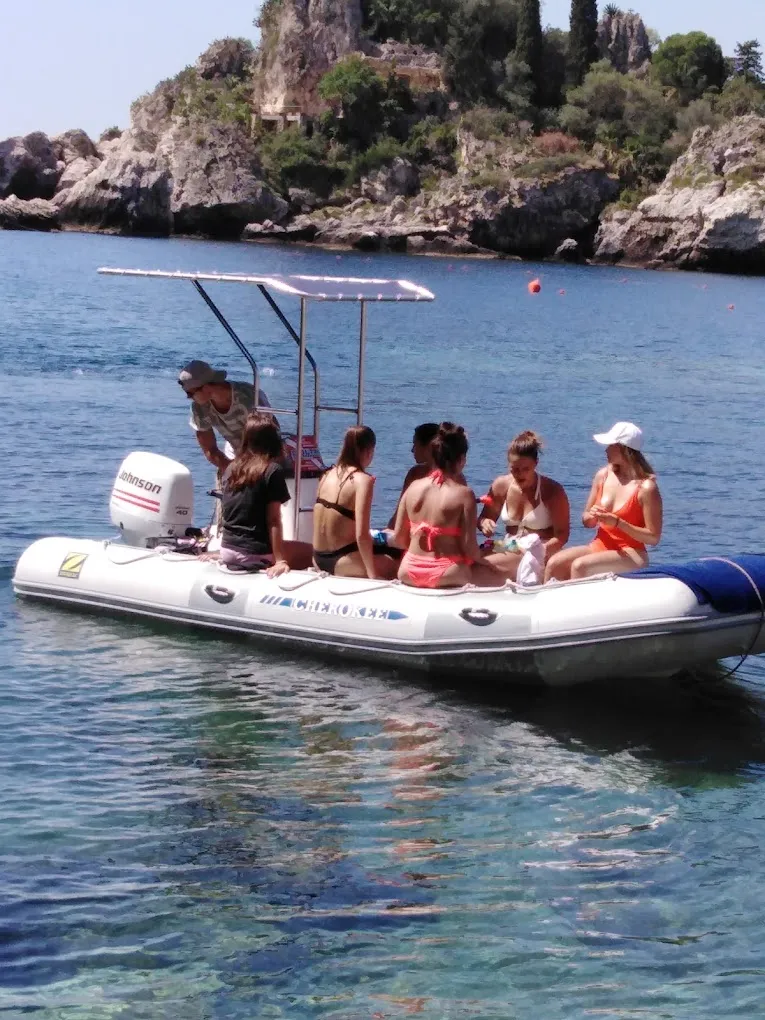 Con partenza dalla spiaggia dell'Isola Bella, vi imbarcherete in un gommone che percorrerà le baie dell'Isola Bella, la Grotta Azzurra e Capo Taormina. Inoltre, potrete scegliere fra due diversi tour con snorkeling.