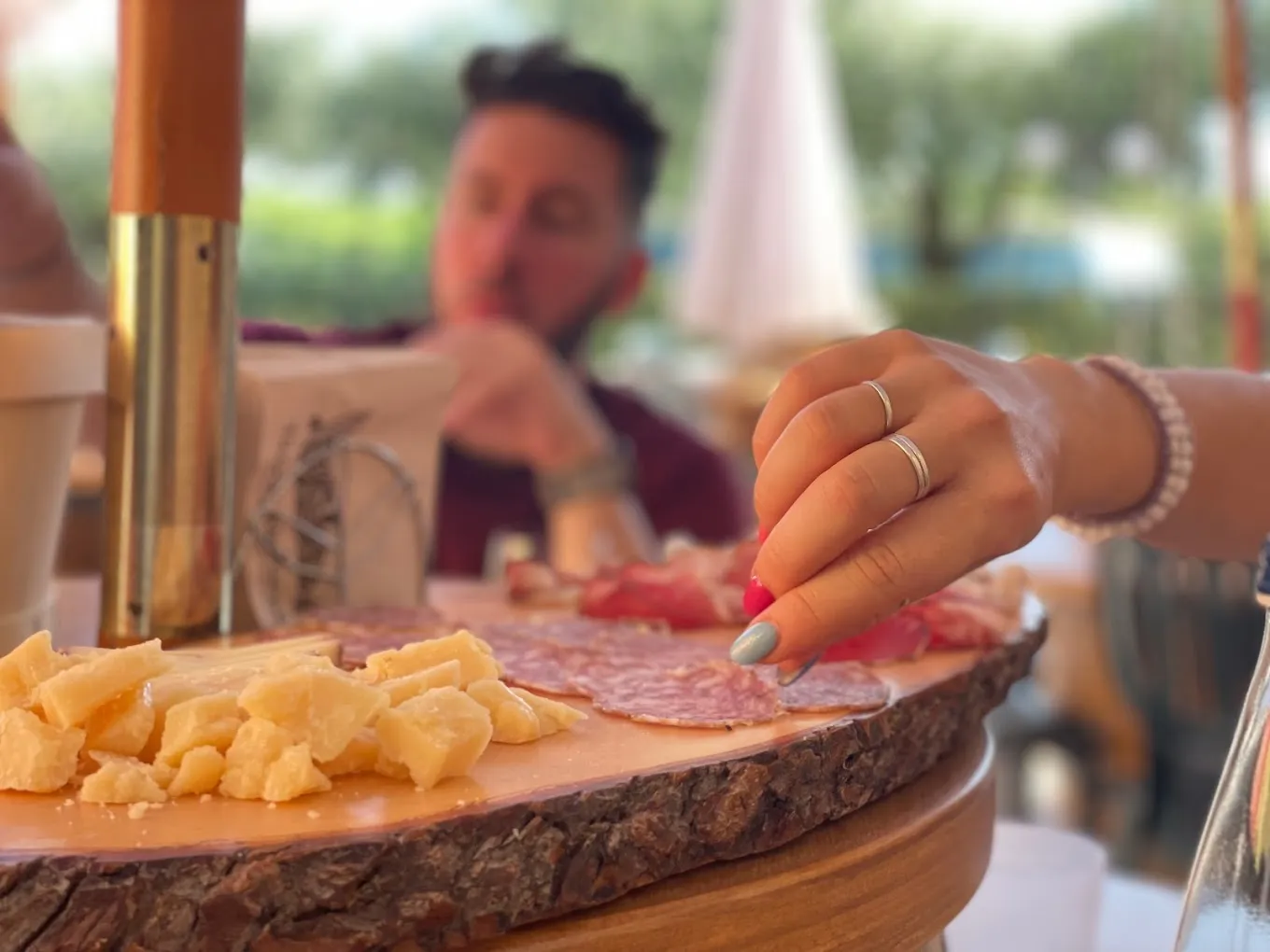 La degustazione è accompagnata da un tagliere di salumi e formaggi locali.